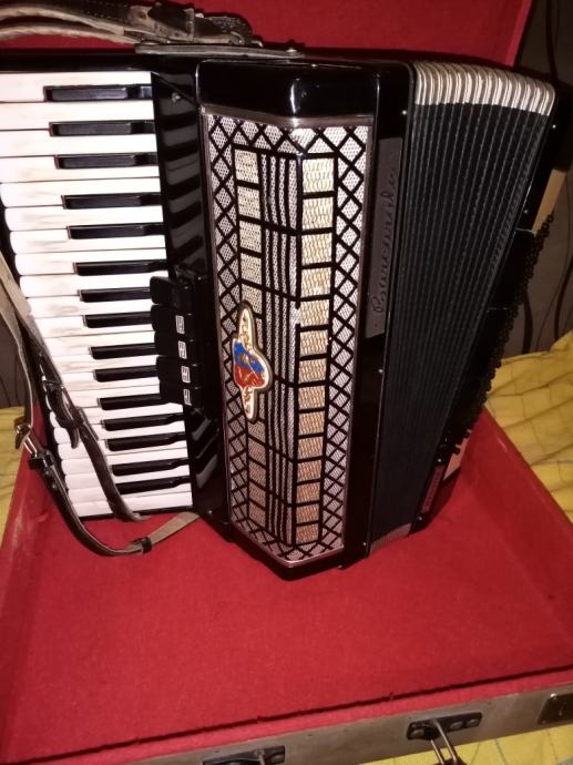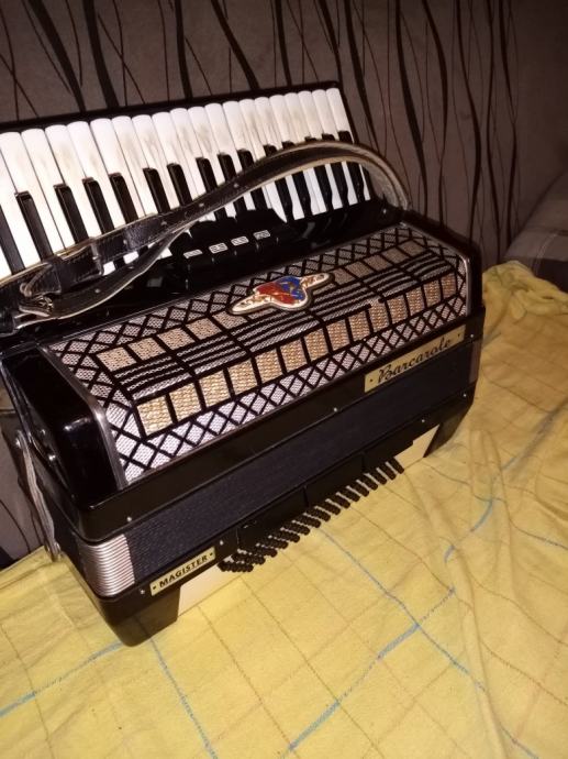 Prodajem harmoniku Barcarole magister, 96 basova, troglasna na klavijaturi i basovima, tehnicki i tonski dobro stanje,mjeh-odlican!