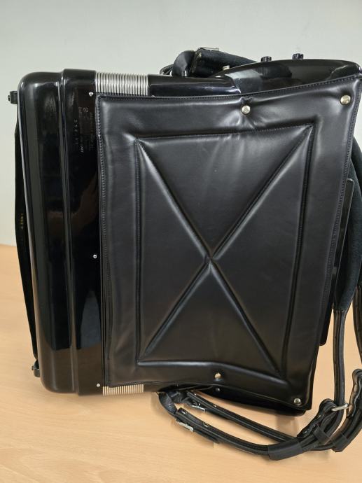 Prodajem harmoniku BUGARI ARMANDO Artist 120 b, dupla kabina 2+2, 13+M+7 registara. Orginal talijanska izuzetno dobro očuvana, kao nova, tvorničko stanje tonova prve klase, korištena jako malo, tonski i mehanički vrhunska u rangu Guerrini, Dallape i Settimo Soprani.