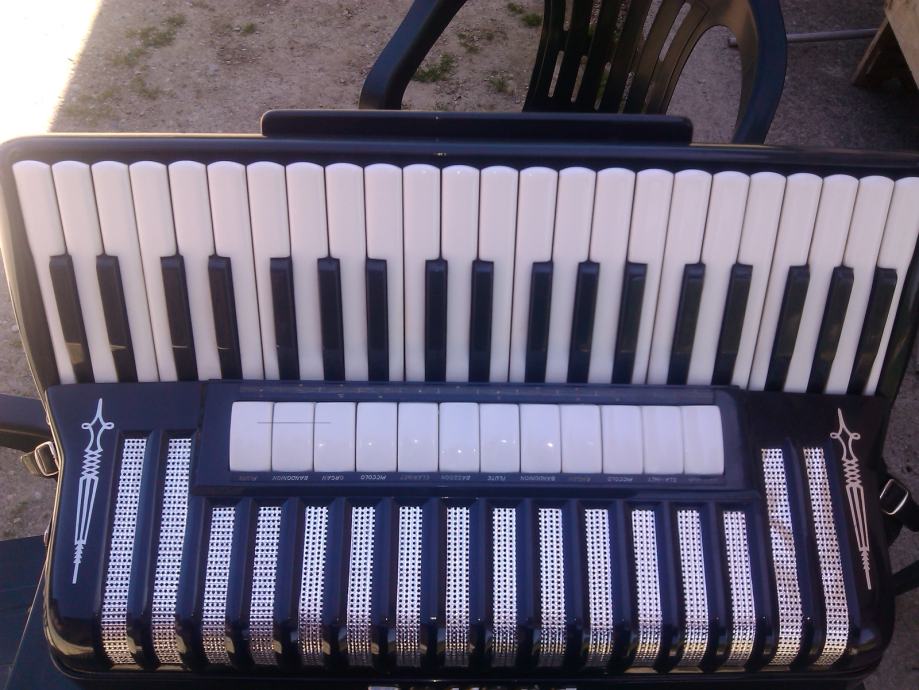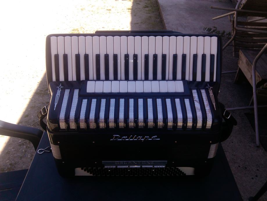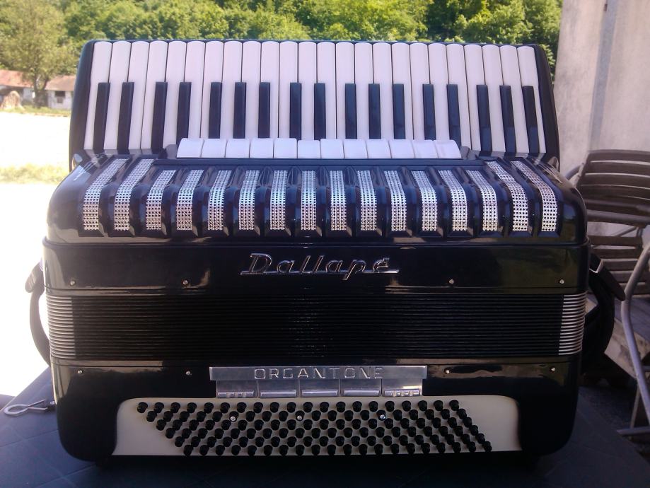 Dallape harmonika 120 basova,12+1 registar u primu i 5 registara u basu.Harmonika sa kabinom,izrazito lagana i uska svega 18 cm.sto je jedna od bitnijih prednosti kod koristenja iste.Radi se o italijanskoj harmonici zlatne serije radjenje specijalno za američko trzište gdje je kvalitet u izradi bio na visokom nivou i standardu.Riječ je o original profesionalnoj harmonici koja je u vrlo dobrom stanju tehnički,tonski i mehanički.Moguć prenos u Hrvatsku.