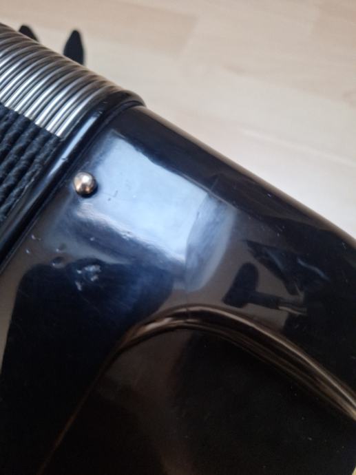 Postoji manje kozmetičko oštećenje na kućištu (vidljivo na slici), koje ne utječe na rad ni zvuk harmonike.3+ 1 je ima korpus 22.5 ili 23 cm.