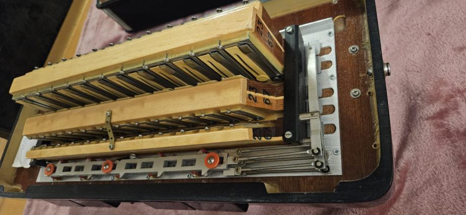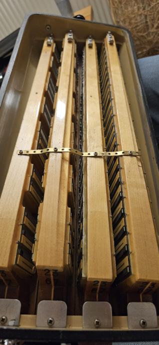 Harmonika ima 120 basova, 13+5 registara. Piccolo štim. Jako je čuvana i pažena.