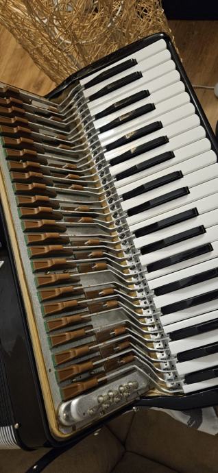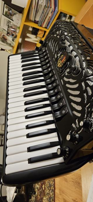 Harmonika izgleda prelijepo, a i odlična je za sviranje, težina je oko 12 kg s remenjem.
