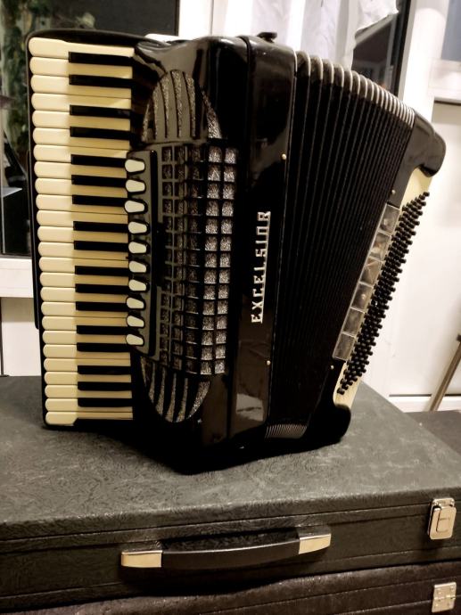 Prodajem harmoniku Excelsior, 120 basa, dupla kabina (2+2), mussete štim. Harmonika je izuzetno jaka, glasna i jasna. Ima širok i duboki ton. Za više info i probu nazovite: +386 40 357 924 (WhatsApp).