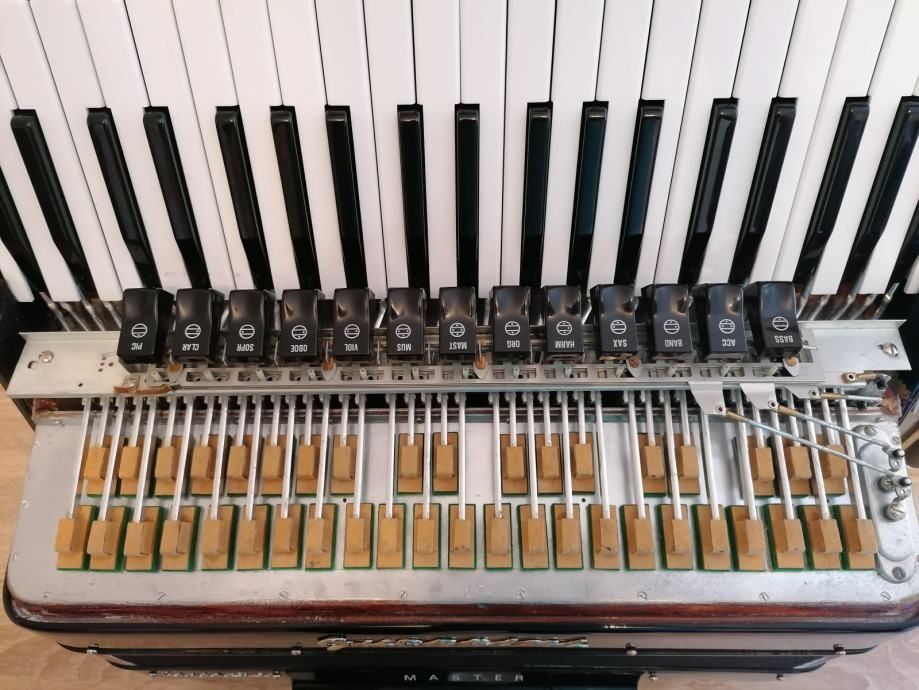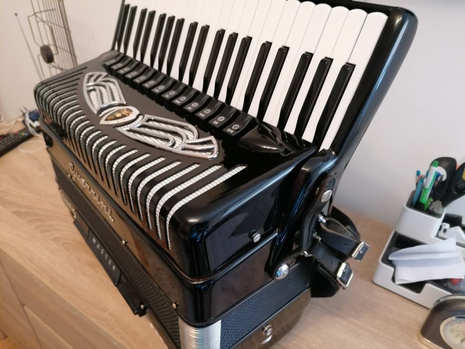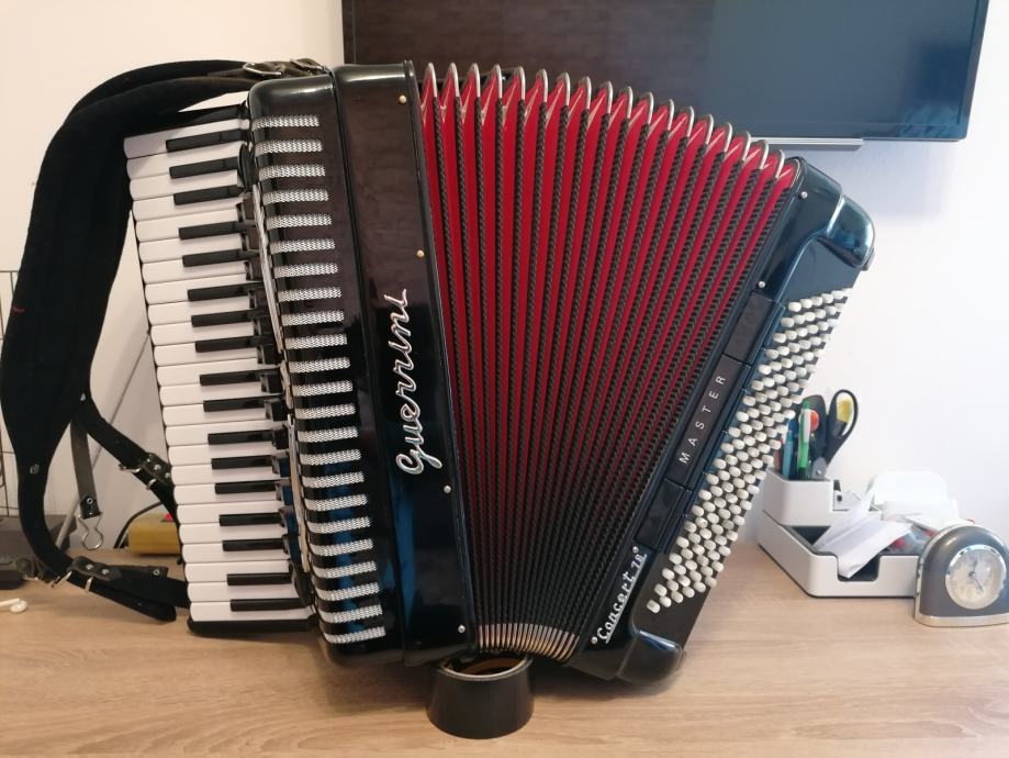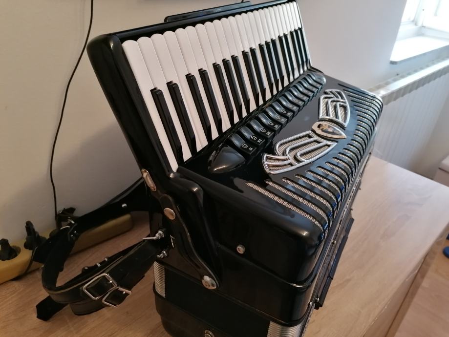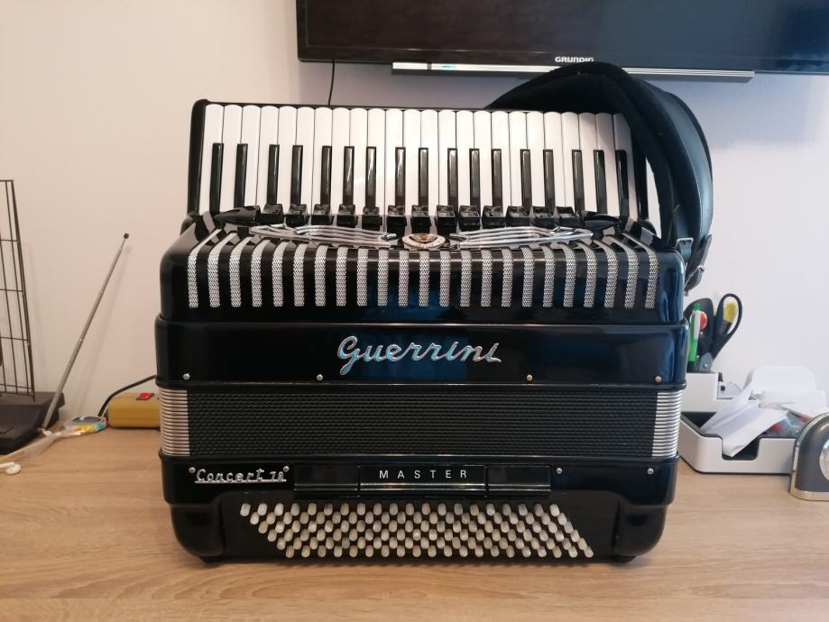 Prodaje se harmonika Guerrini-Ramjes 120 basova,dupla kabina 2+2,13+M+9 registara,tonski i mehanički u odličnom stanju,kao nova,I klasa ručno kovanih tonova,glasna i otvorena.Harmonika je rađena za Švedsko tržište pa ima drugačiju masku nego što imaju ovdašnje Guerrini harmonike,prerada sa dugmetare.Harmonika ima svoj kofer.Moguća zamjena za jeftiniju harmoniku uz nadoplatu.