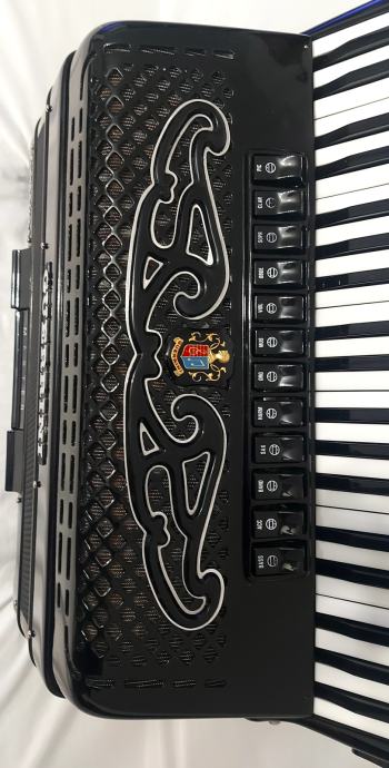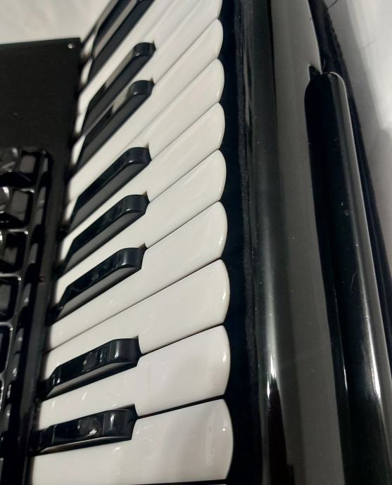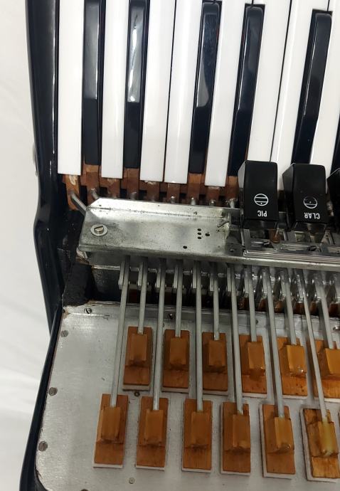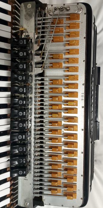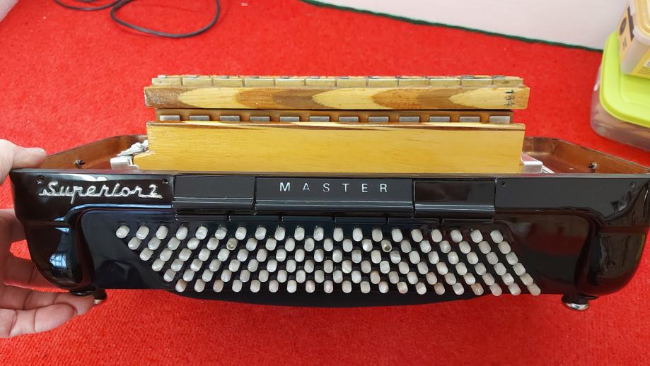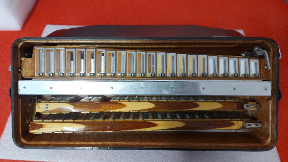 ORGINALNA HARMONIKA IZ 80 GODINA 4/5 GLASNA 12+1+9 REG TIPKA DRVO KROZ DRVO POLU OBLA TIPKA TABOROV TONOVI ŠARENI FASENI G FASEN NA BAS STRANI TONSKI MEHANIČKI DIHTACISKI FANTASTIČNA NOVI PASOVI KOMPLET