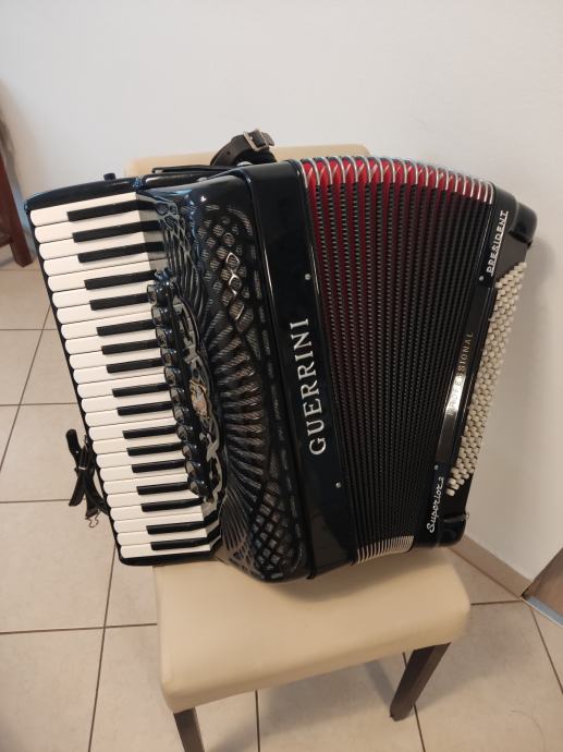 Prodaje se harmonika Guerrini Superior 2 120 basova,11+M+M+7 registara,dupla kabina 2+2,tonski i mehanički u odličnom stanju,svirana isključivo u kućnoj upotrebi.Harmonika je glasna i ne guši se.