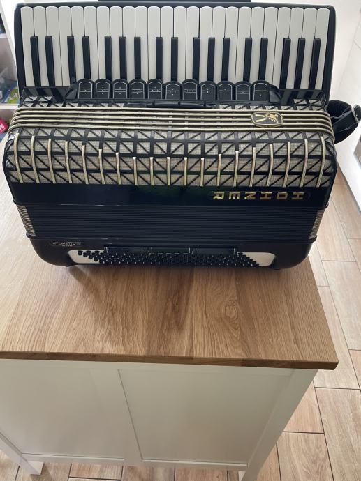 Prodajem odličnu klavirsku harmoniku Hohner Atlantic IV De Luxe, priznate njemačke kvalitete. Harmonika je u izvrsnom stanju – praktički kao nova, vrlo malo svirana, bez oštećenja ili tragova korištenja. Ima piccolo i organ, bočni registar.