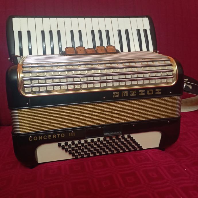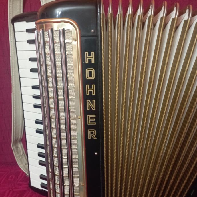 Prodajem harmoniku Hohner Concerto III 72 basa 5+2 registra sa koferom. Harmonika je troglasna na klaviaturi peteroglasna na basu potpuno ispravna bez znakova korištenja kao nova. Inf. na mobitel.