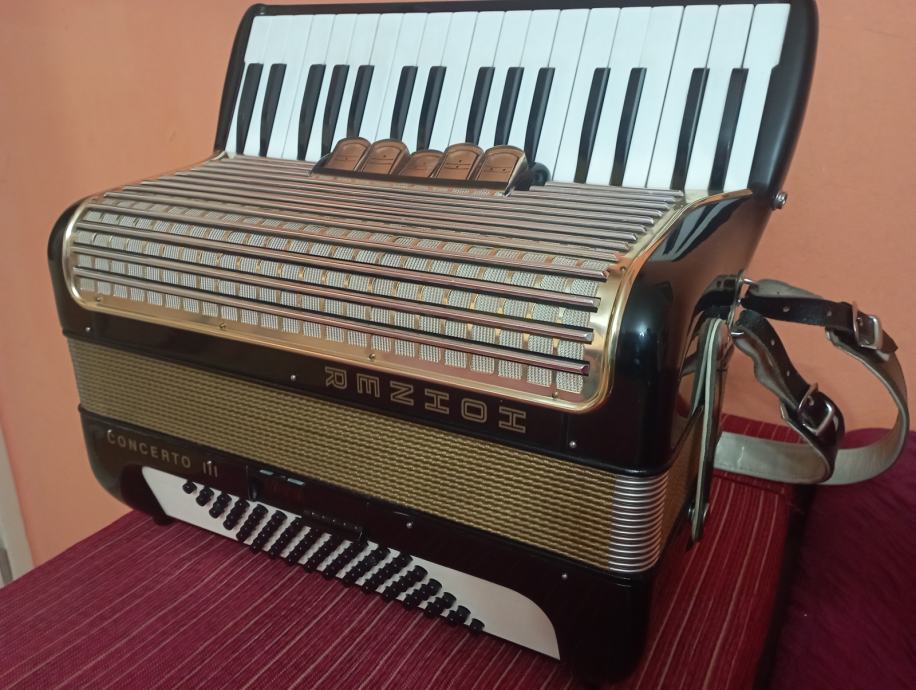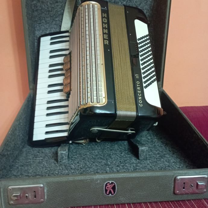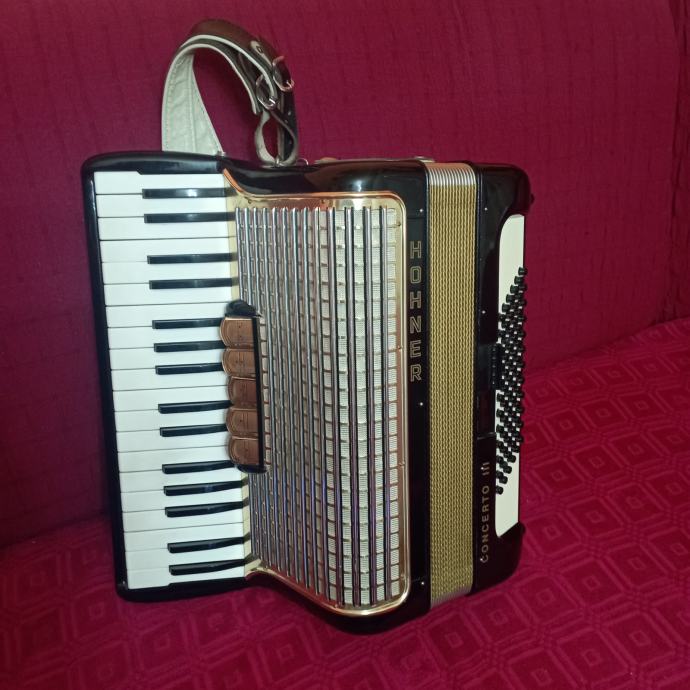 Prodajem harmoniku Hohner Concerto III 72 basa 5+2 registra sa koferom. Harmonika je troglasna na klaviaturi peteroglasna na basu potpuno ispravna bez znakova korištenja kao nova. Inf. na mobitel.