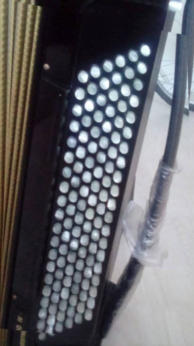 dugmetara, b grif, 5 redova, 120 basova, četveroglasna, 11+3 registra, bijeli mijeh, 100% dihtacija, svi tonovi 100% ispravni i rade besprijekorno