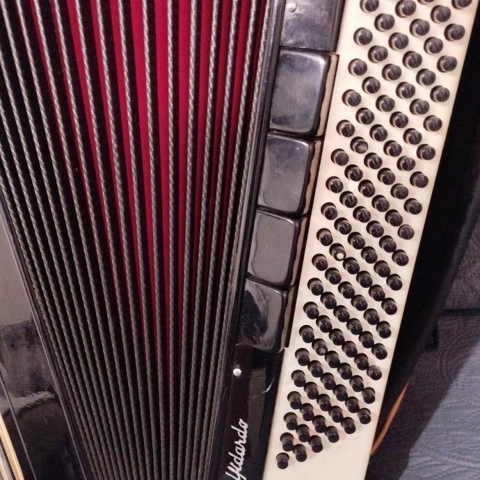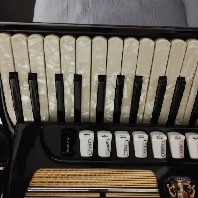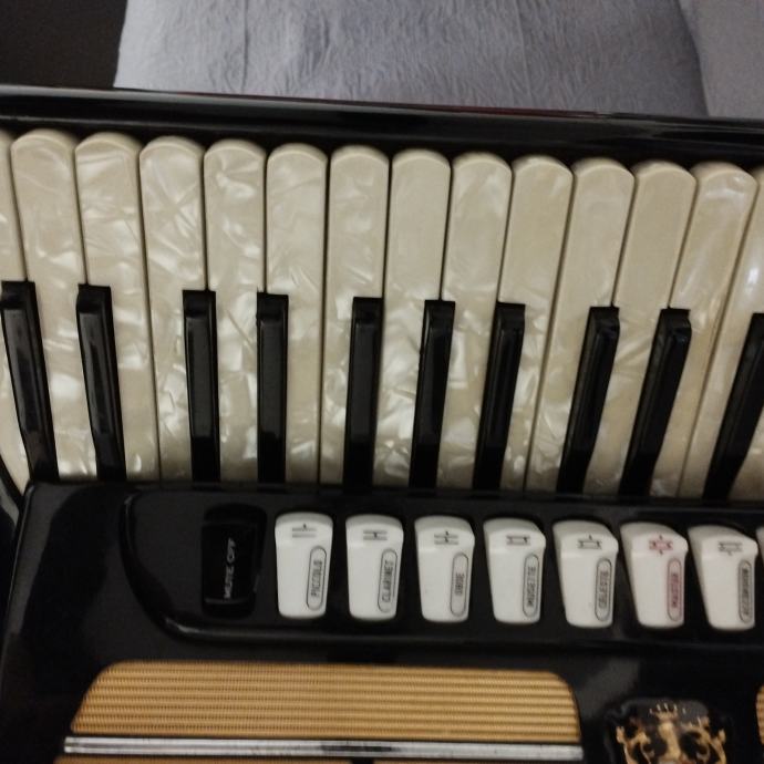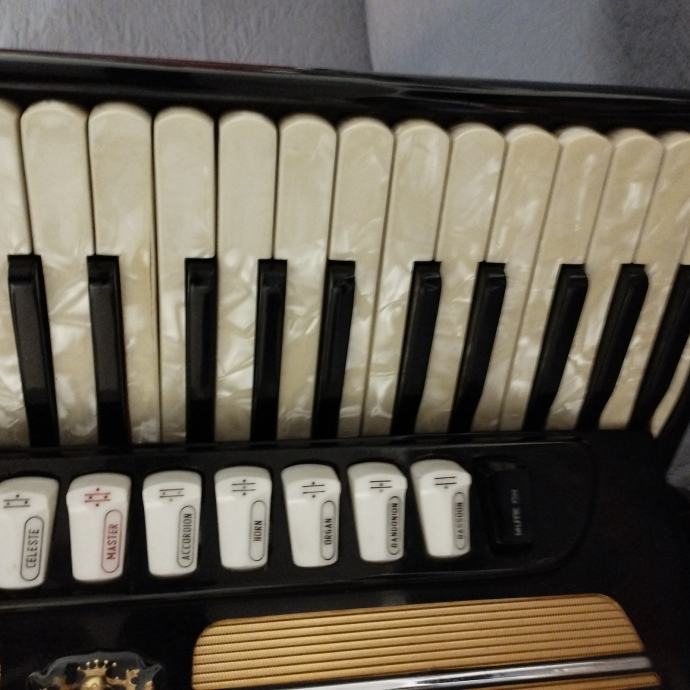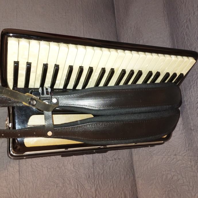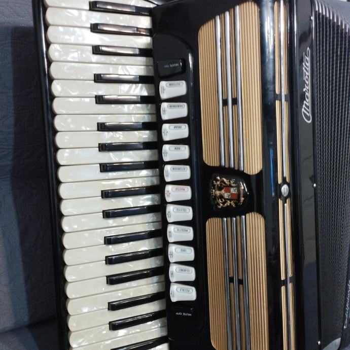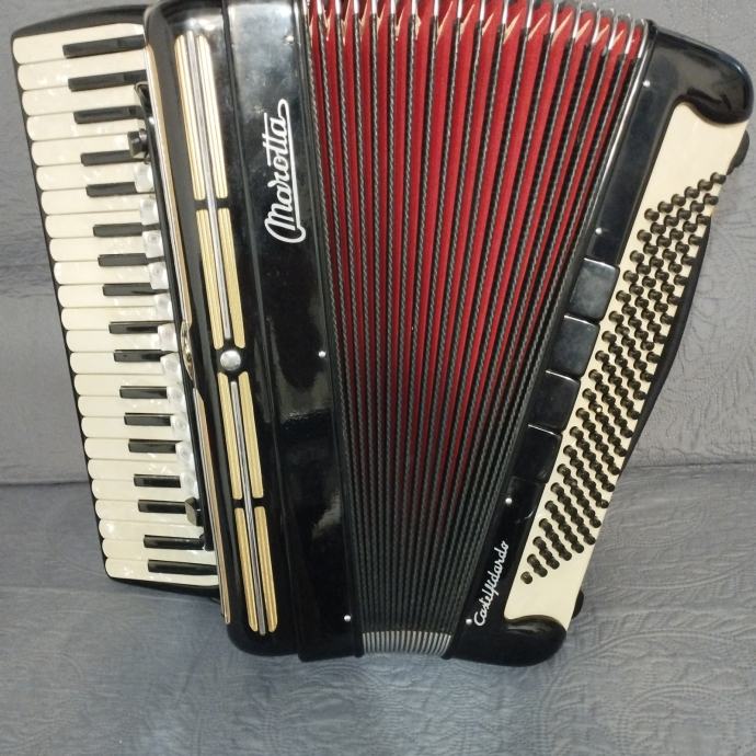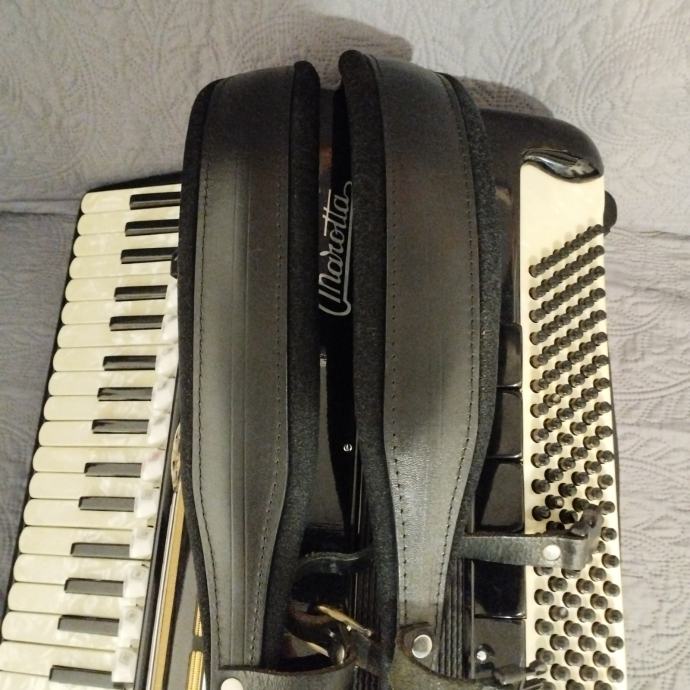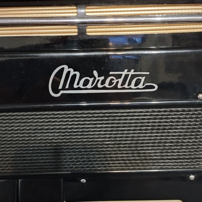 Harmonika Marotta Castelfidardo 120 basova četveroglasna sa srodnim 11+4 registra,sedef tipka Guerini tonovi široki(Skandali )remeni u urednom stanju .