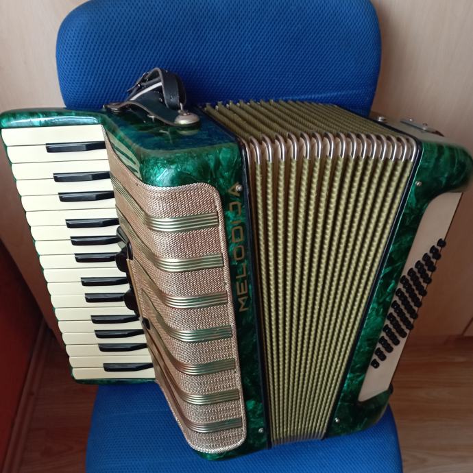 Prodajem harmoniku Melodija 48 basova sa koferom. Harmonika je dvoglasna ispravna dobro očuvana. Inf. na mobitel.