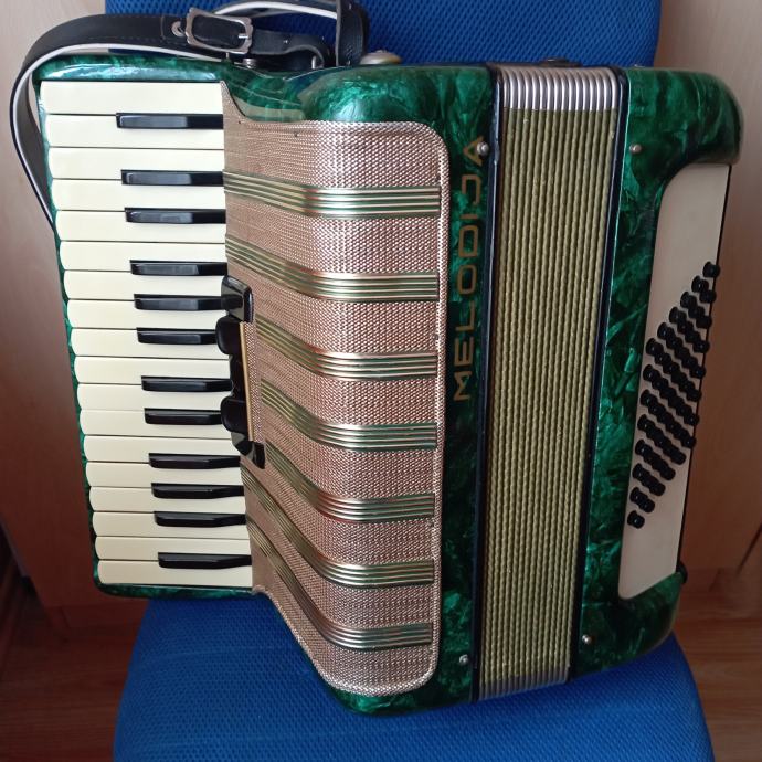 Prodajem harmoniku Melodija 48 basova dvoglasna sa koferom, ispravna odlično očuvana. Inf 099/676-4633.