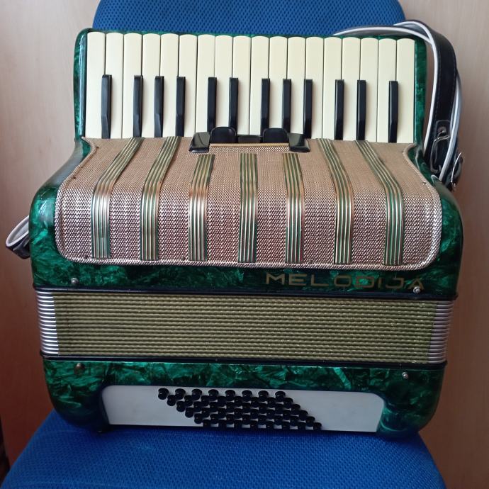 Prodajem harmoniku Melodija 48 basova dvoglasna sa koferom. Inf. na mobitel.