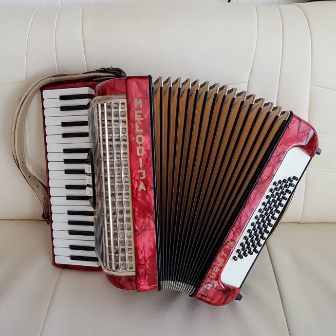 Harmoniku Melodiju 60b prodajem sa koferom.Harmonika je doslovno kao nova,malo korištena i potpuno ispravna.Pogodna je za djecu jer je lagana i praktična za učenje.