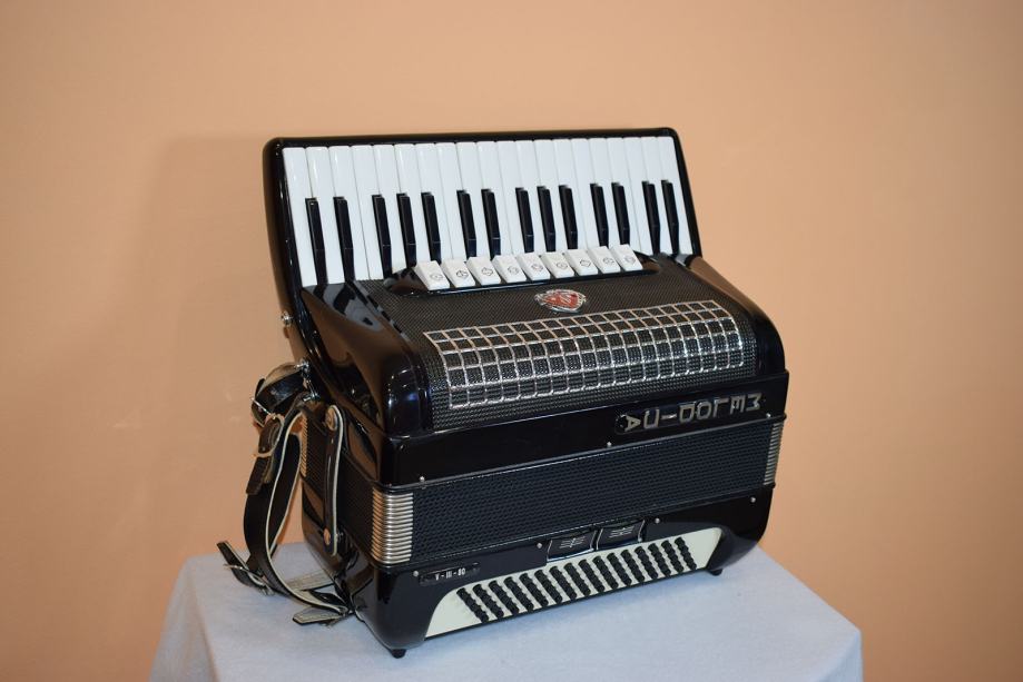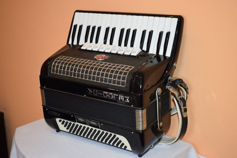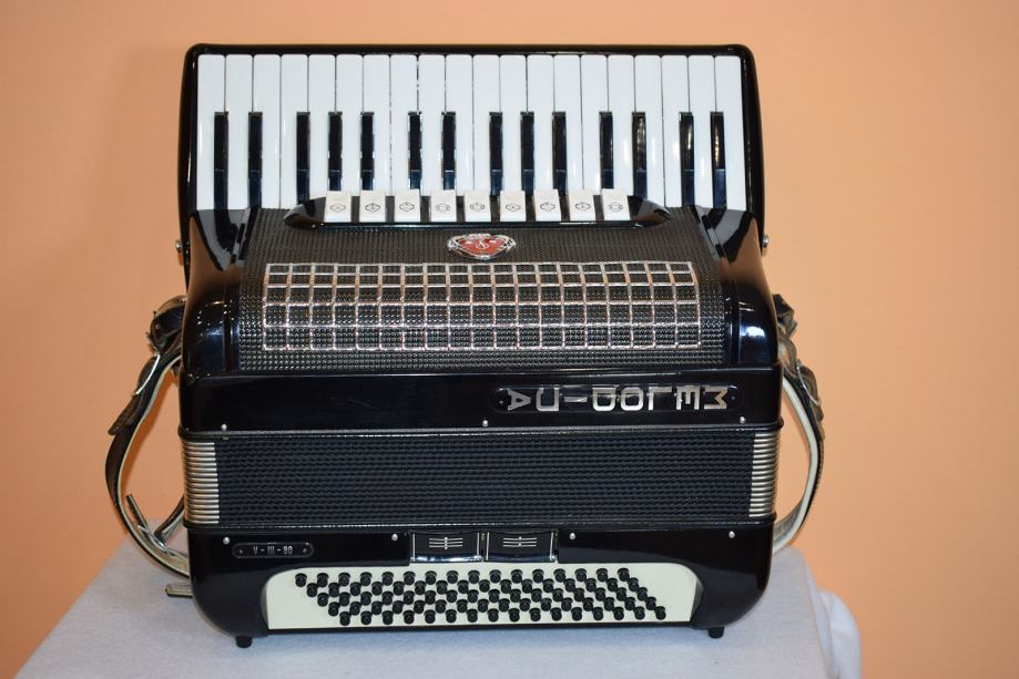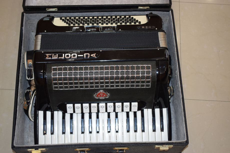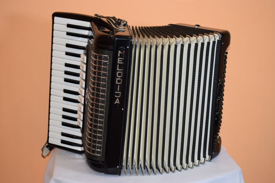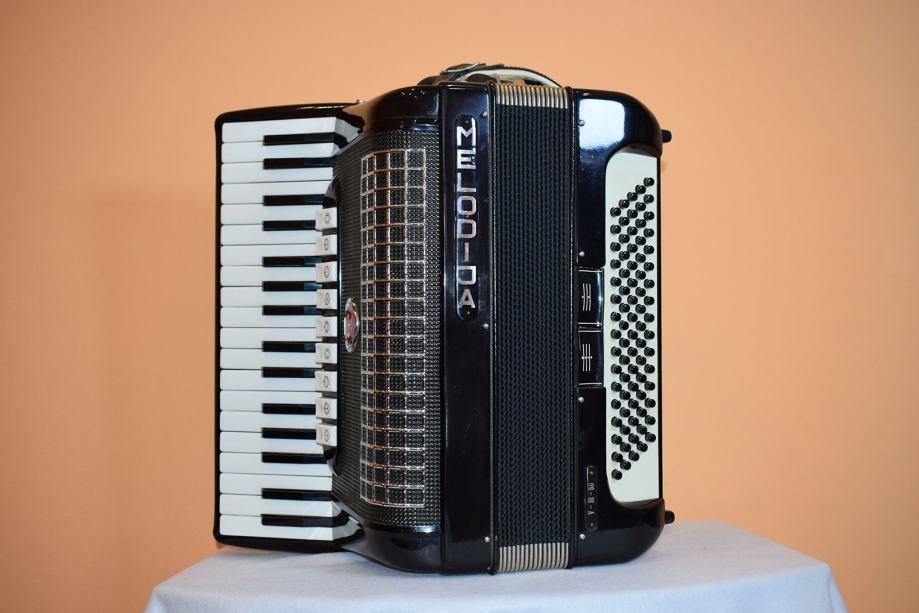Prodajem harmoniku Melodija 80 basova V-III-80 sa koferom, malo svirana, korištena za muzičku školu. ispravna očuvana. Idealna za muzičku školu i učenje, kao i za svirku za one koji traže laganu harmoniku sa mekanom mehanikom za jako ugodno sviranje i finih i čistih boja tona. Ima 5 registra za melodiju i 2 za basove. Harmonika je lijepo oblikovana sa mekanim širokim remenjem, i sve je na harmonici originalno kao od prvog dana.