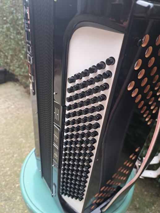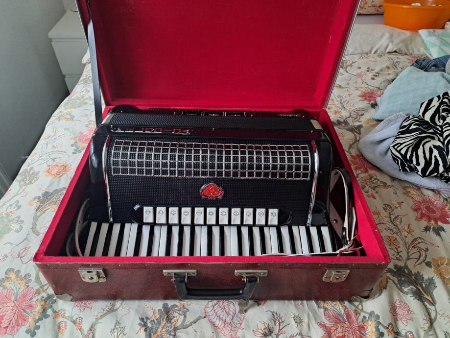 Doslovno nova,registri 11+3 ima tipku ostecenu sto ne smeta 120 basova dolazi sa orginalnim koferom