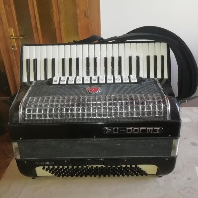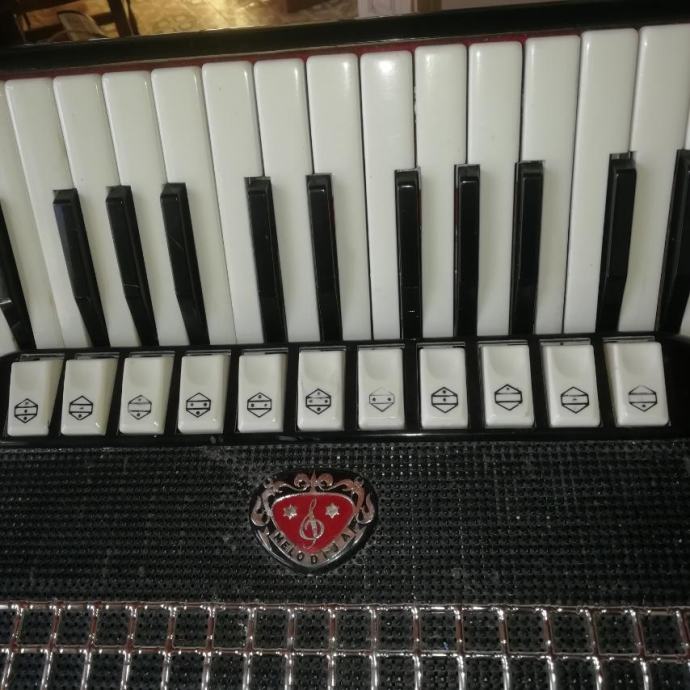 Prodajem klavirnu harmoniku "Melodija",model C-IV-120. Harmonika je 4-glasna,sa pikolo fasenom (tonovima). Ima 120 basova,11 + 3 registara. Harmonika ima potpuno novo sve remenje,novo zaštitno jastuče,i kofer koji je u vrlo dobrom stanju-potpuno ispravan. Za dogovor pozovite 098-1762109. Isključivo poziv,BEZ PORUKA !!!