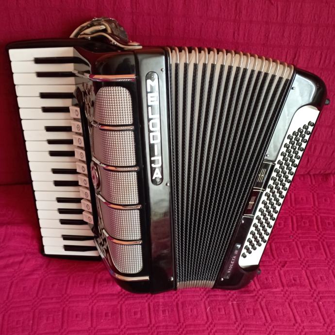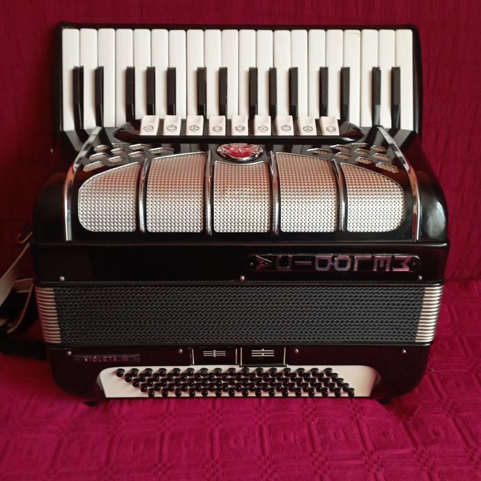 Prodajem harmoniku Melodija Violeta III 80 basova 9+2 registra sa koferom. Harmonika je ispravna odlično očuvana. Inf. 099/676-4633.