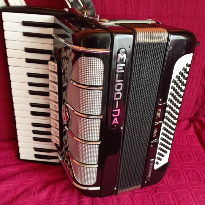 Prodajem harmoniku Melodija Violeta III 80 basova 9+2 registra sa koferom, servisirana ispravna odlično očuvana. Inf. 099/676-4633