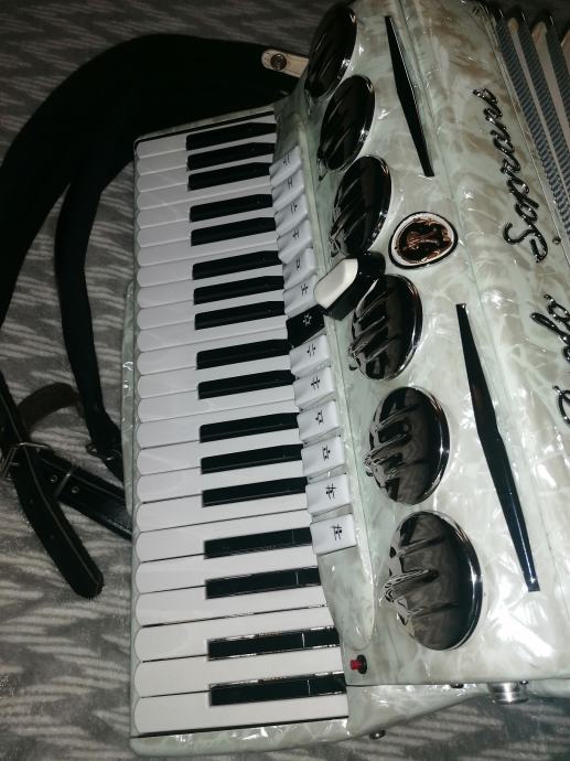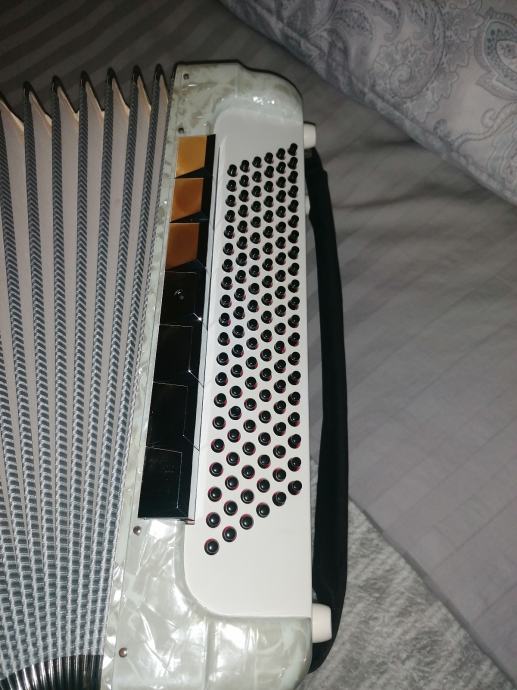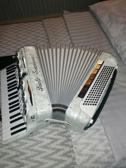 Prodajem harmoniku Paolo Soprani 120 basova četveroglasna ima piccollo, organ violin... 13 registara u primu 7 registara u basu,harmonika je doslovno nova bez ijedne crtice, potpuno ispravna, tonski, tipka, dihtacija top,ima široko remenje i kofer, molim ozbiljne samo pozivi bez poruka koja je cijena, koga zanima ta harmonika taj će nazvati. 098 239 247