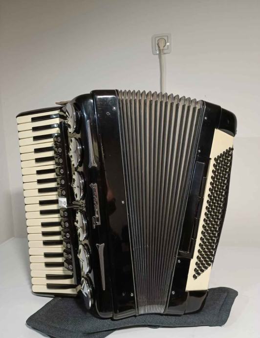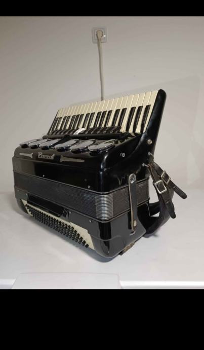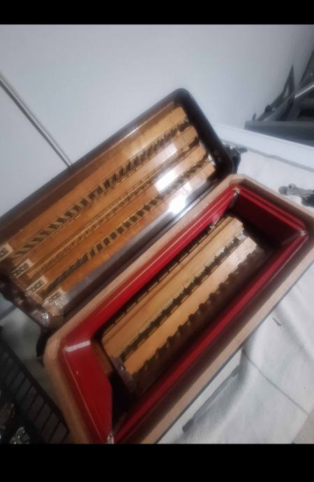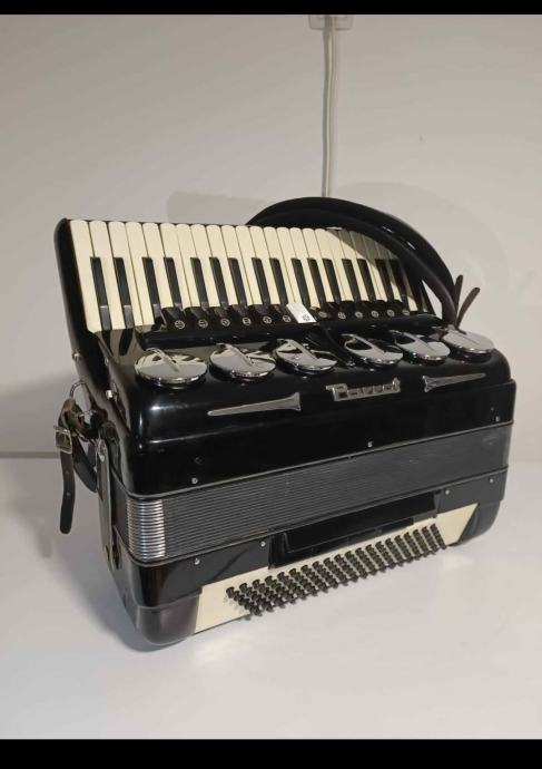 Na prodaju četveroglasna harmonika Scandalli Parot sa sordinom(polukabina),tonski izvrsna,točna,mekana i brza tipka,očuvana maksimalno,glasna!!! Registri 13+M i u basu 5+M,bas jako dobar,dubok!!!!Harmonika nije teška i baš je onako kompaktna,aluminijski dekl,dihtacija 99%!!!!!!!!