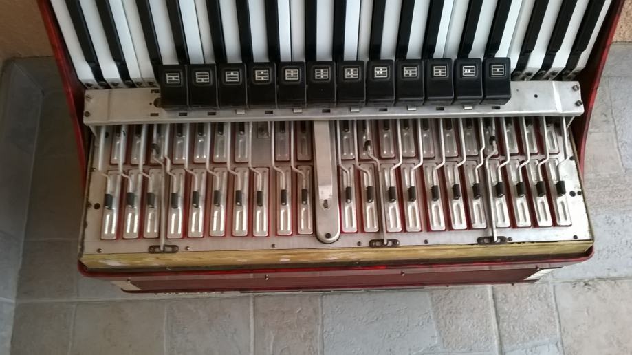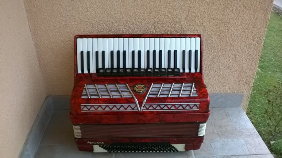 Prodajem Njemačku harmoniku Royal Standard Montana 120 basova, 12+4 registra četveroglasna. Ovo je stariji model harmonike u koje su ugrađivani drveni faseni te je harmonika tonski jako glasna i melodična za razliku od ovih novih modela. Harmonika je u odličnom stanju i ispravna u svakom pogledu,moguče ju je pregedati i isprobati bez obaveze na kupnju.