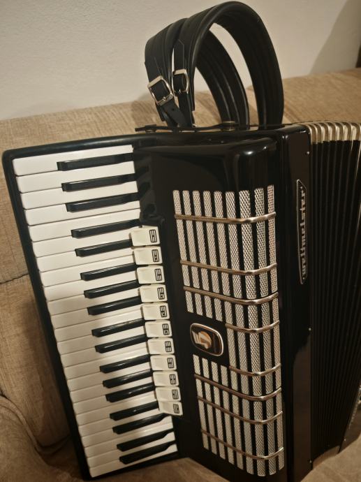 Harmonika je gotovo pa nova, korištena isključivo u kućnom okruženju. Svi tonovi su ispravni, prodorni i glasni. 11+5 registara, četveroglasna, široki udobni remeni. Mijeh dihta kako i dolikuje novom instrumentu. Stanje izvrsno, bez potrebe za ikakvim dodatnim ulaganjem.