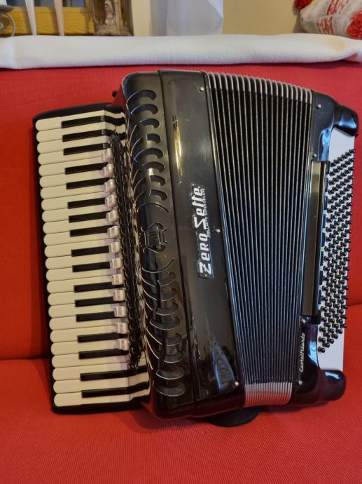 Harmoniku ZERO SETTE B30, četveroglasnu, kabinsku, iz 1962 godine zajedno sa koferom prodajem. Harmonika je u odličnom stanju.