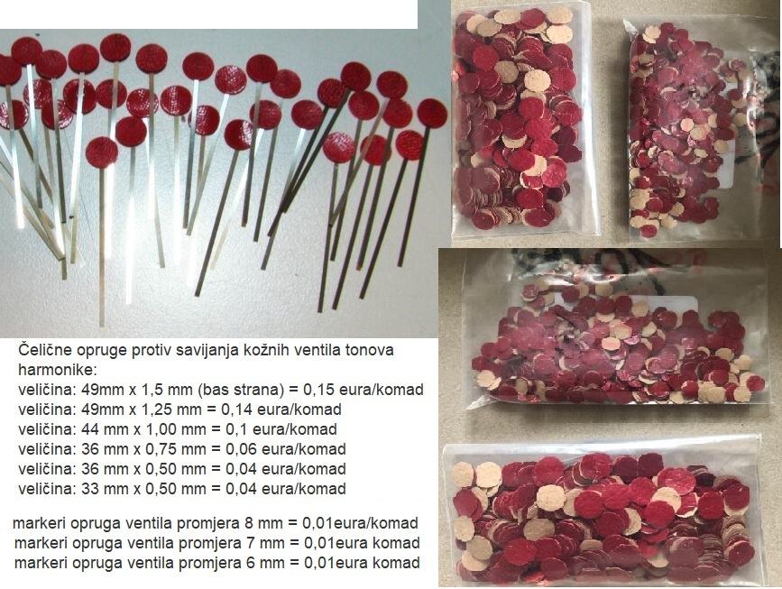 - razna galenterija za rad oko harmonika i opreme (vijci za drvo, drukeri, nitne itd.).