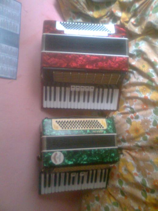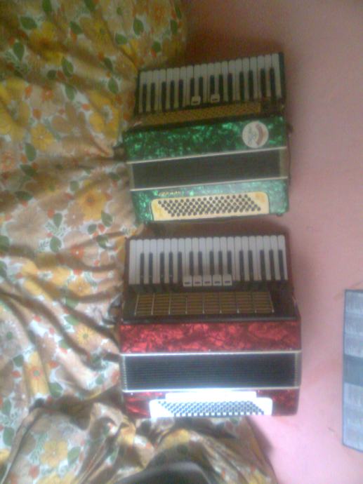 PRODAJEM DVIJE HARMONIKE RUSKE PROIZVODNJE,ZELENA 80 BASA 2 REGISTRA NA TIPKAMA,CJENA 600 EURA,I CRVENA HARMONIKA 96 BASA 5 REGISTRA NA TIPKAMA I 3 NA BASEVIMA,CJENA 800 EURA,HARMONIKE SU ISPRAVNE I JAKO GLASNE,UZ NJIH DAJEM I KOFER. ILI MJENJAM OBADVIJE ZA HARMONIKU U VIŠEM RANGU.
