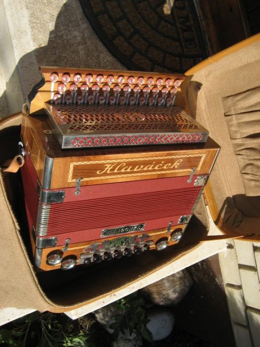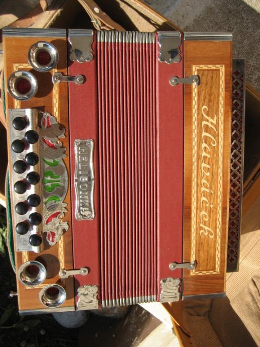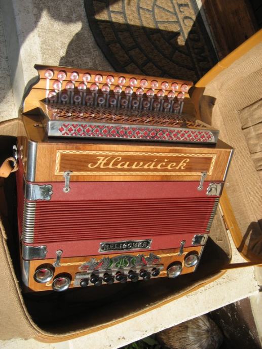 Harmonika heligonka Hlaváček, kupljena nova prije 30 godina. Konzervirana i nikad korištena. Dolazi u kompletu s kutijom za nošenje. Cijena fiksna, bez zamjena.
