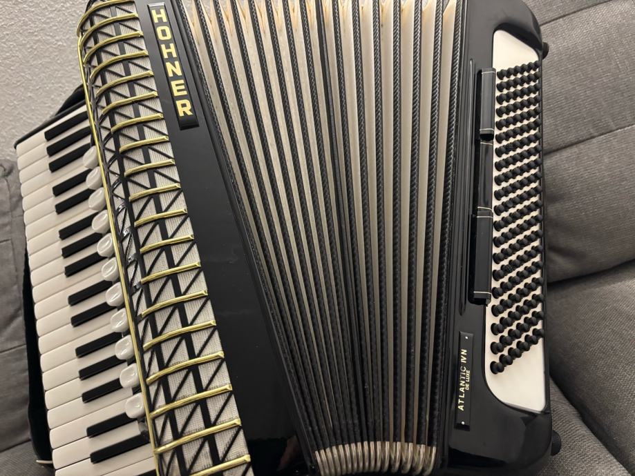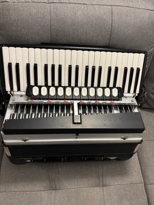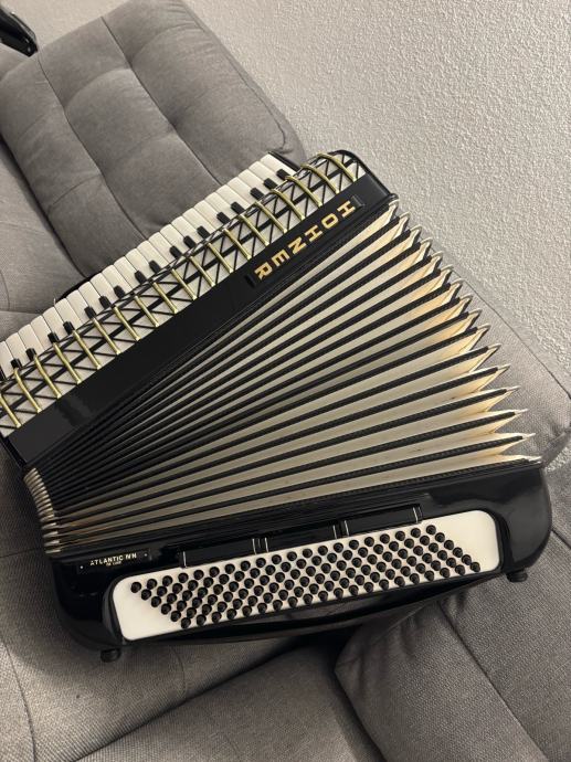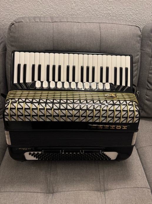 Harmonika Hohner Atlantic IV N DeLuxe 120 basova,cetveroglasna,11+M+3 reg. Harmonika je odrzavana,ocuvana,malo koristena,svirana samo doma , sve original na njoj,potpuno ispravna sa koferom