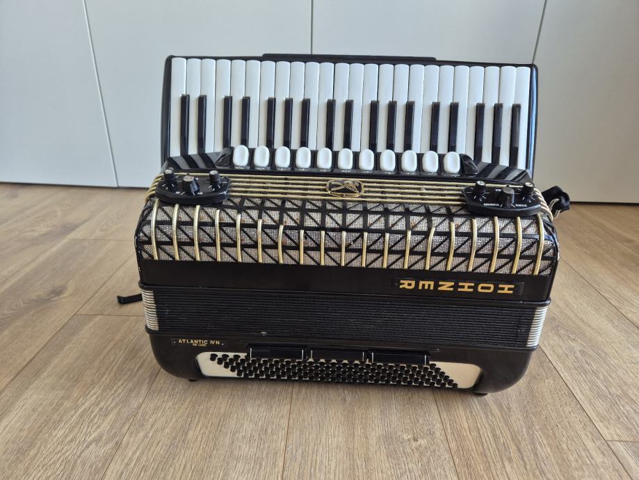 Prodaje se harmonika Hohner Atlantic IV N Deluxe sa originalnim koferom. Servisirana i ispravna harmonika. 11+3. Novi bas remen.