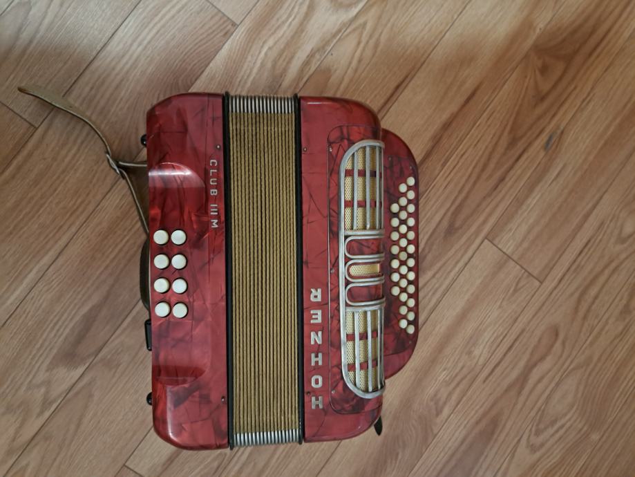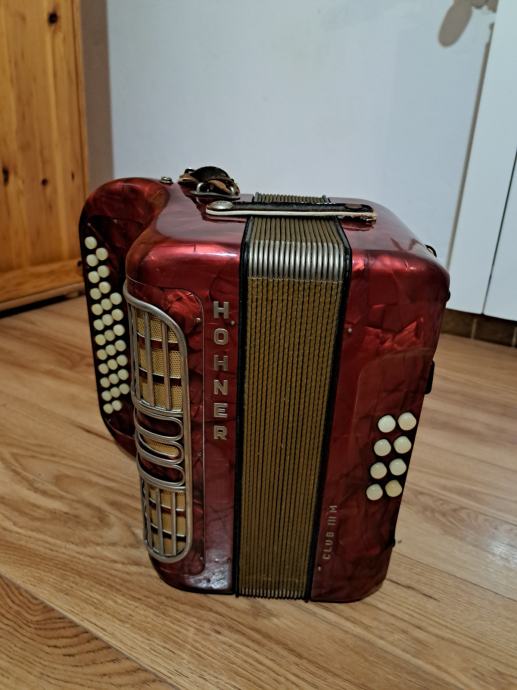 ●Hohner Club III M dijatonička harmonika s tri reda dugmadi i dvanaest rupa za zrak. Dizajniran je da se koristi za sviranje tradicionalne glazbe poput folklora, bluegrassa, zydecaja i drugih žanrova. Također, karakterizira je bogat i pun zvuk koji je tipičan za Hohner harmonike.