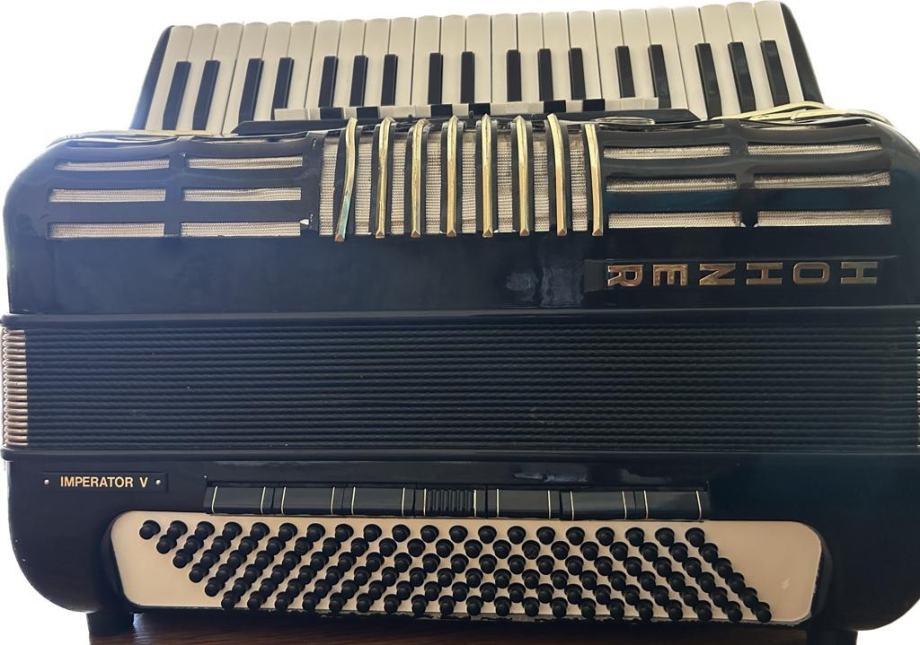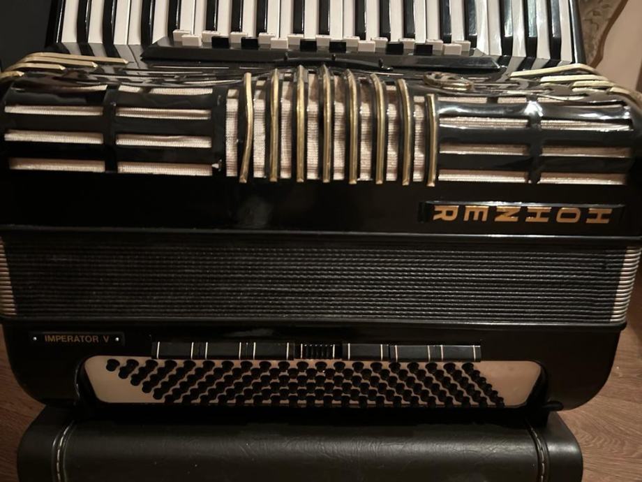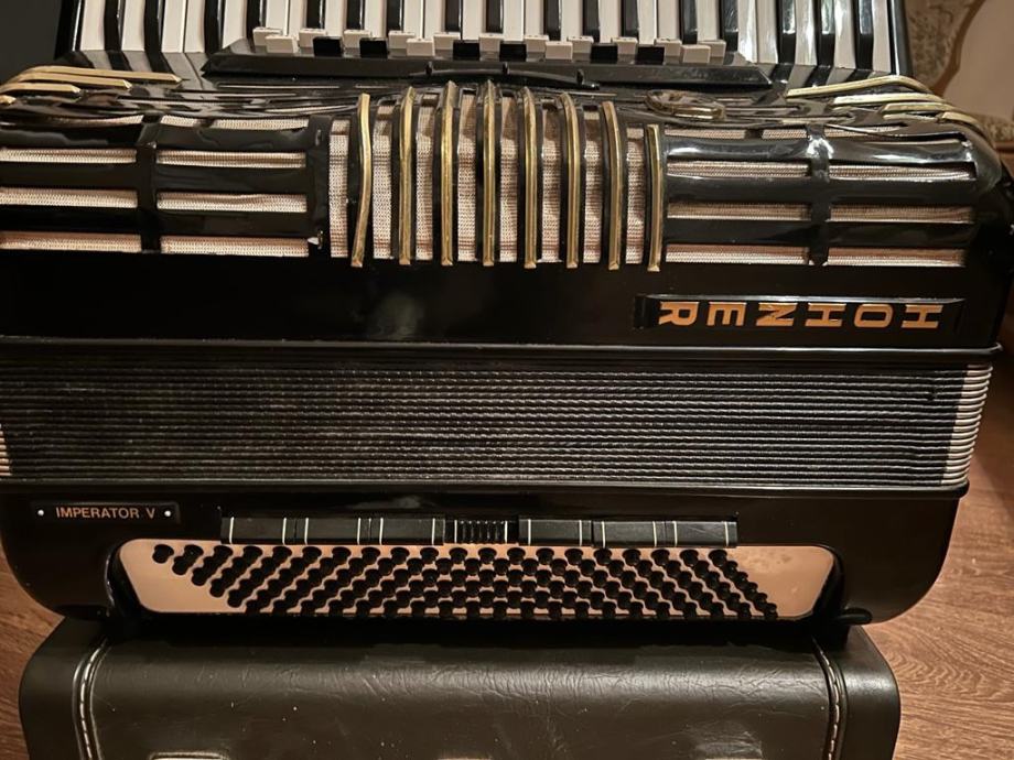 Kabinska harmonika 3+2, petero glasna i u basu i u primu, izuzetno moćna i glasna - 30 registara, talijanski tonovi 1. klase.