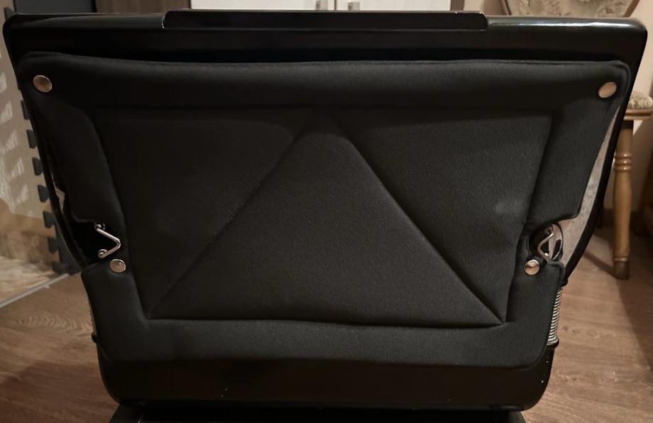 Sa harmonikom dolazi i originalni sačuvani kofer, skoro novi kožni, debelo i široko podstavljeni bas i leđni remeni.