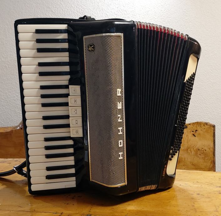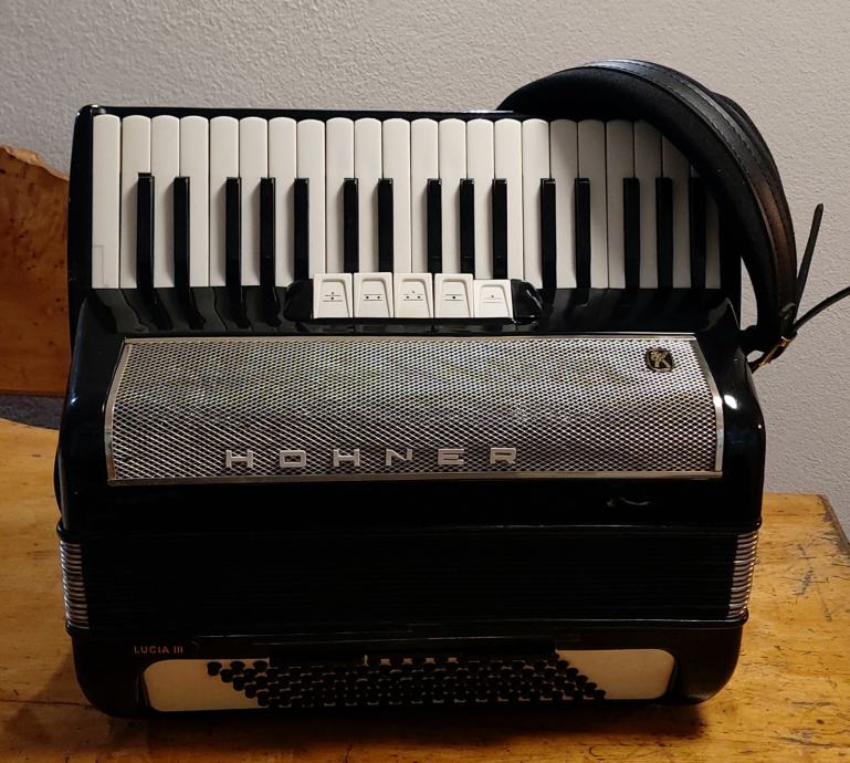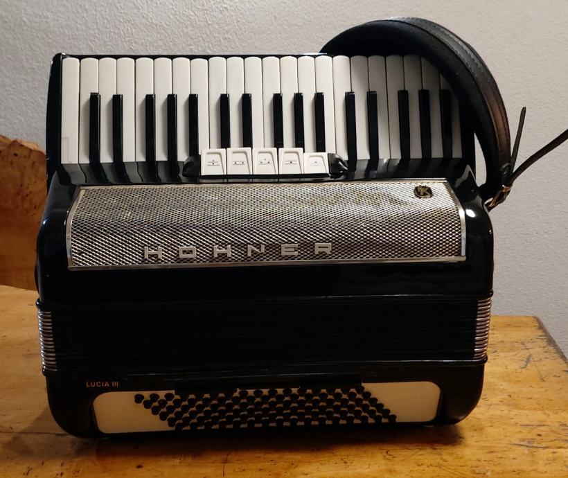 Odlična, mala, lagana harmonika, crveni mjeh, bez daljnjih ulaganja. Upravo servisirana.