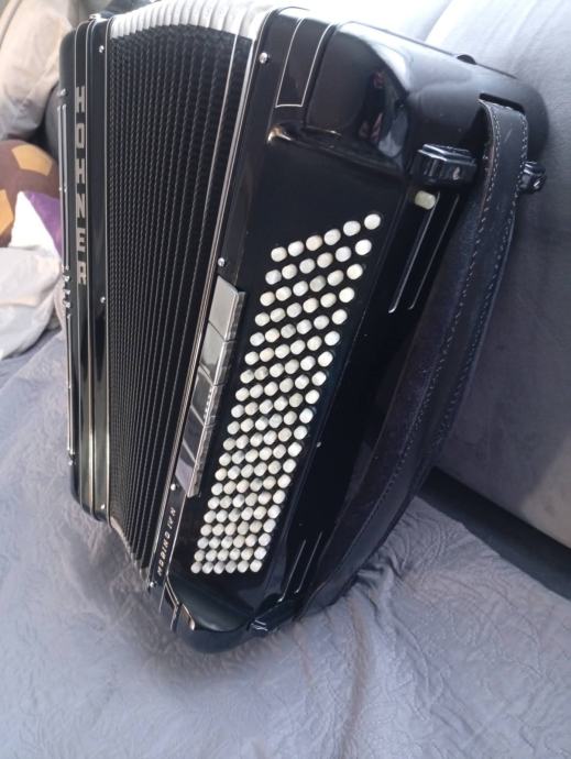 Hohner Morino IV N, 2+2, POVOLJNO prodajem. Legendarni profesionalni model harmonike, četveroglasna s piccolom. Basson i clarinet u kabini. Tonski vrlo moćna - izvrsna. Tipka plitka i brza. Harmonika estetski vrlo lijepa, potpuno ispravna, uredna s kvalitetnim kožnim remenima i originalnim koferom. Cijena 2590 eura. +385996022987 (Ivan)