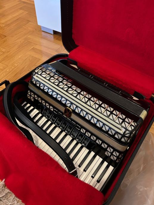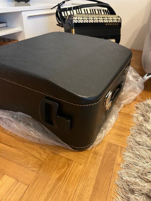 Kofer je danas stigao, nikada korišten, harmonika je u njega stavljena samo radi slikanja. Stanje 10/10 – još uvijek ima originalnu foliju i svu ambalažu. Ključevi (2 komada) nikada nisu skidani.