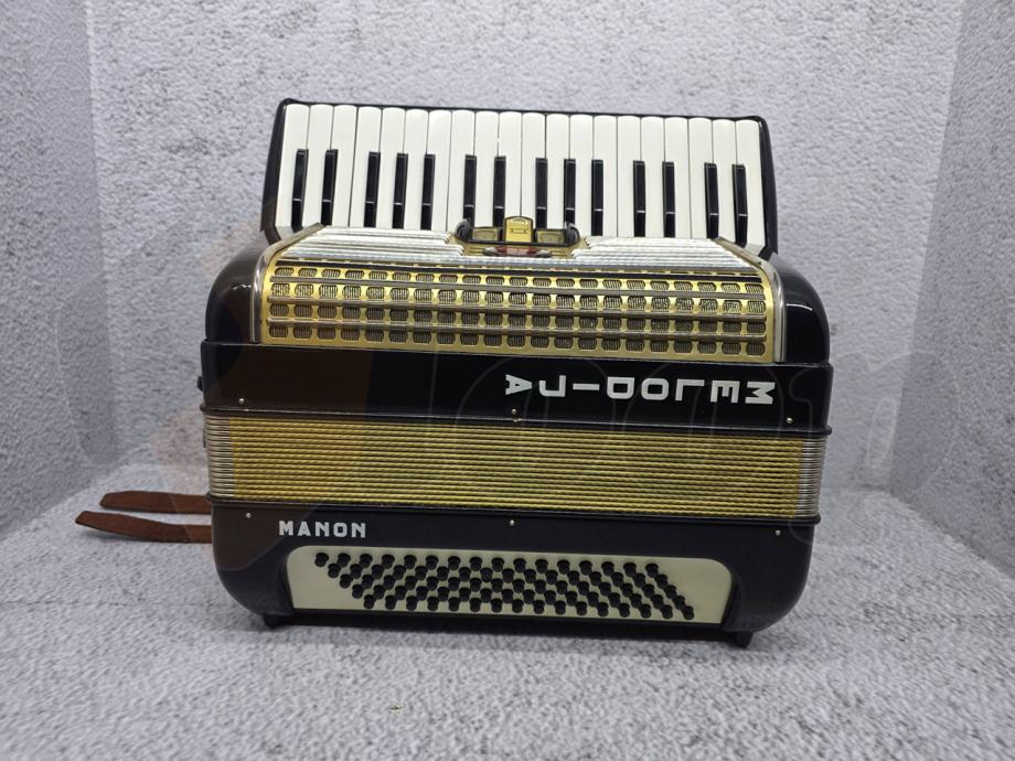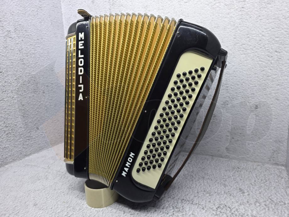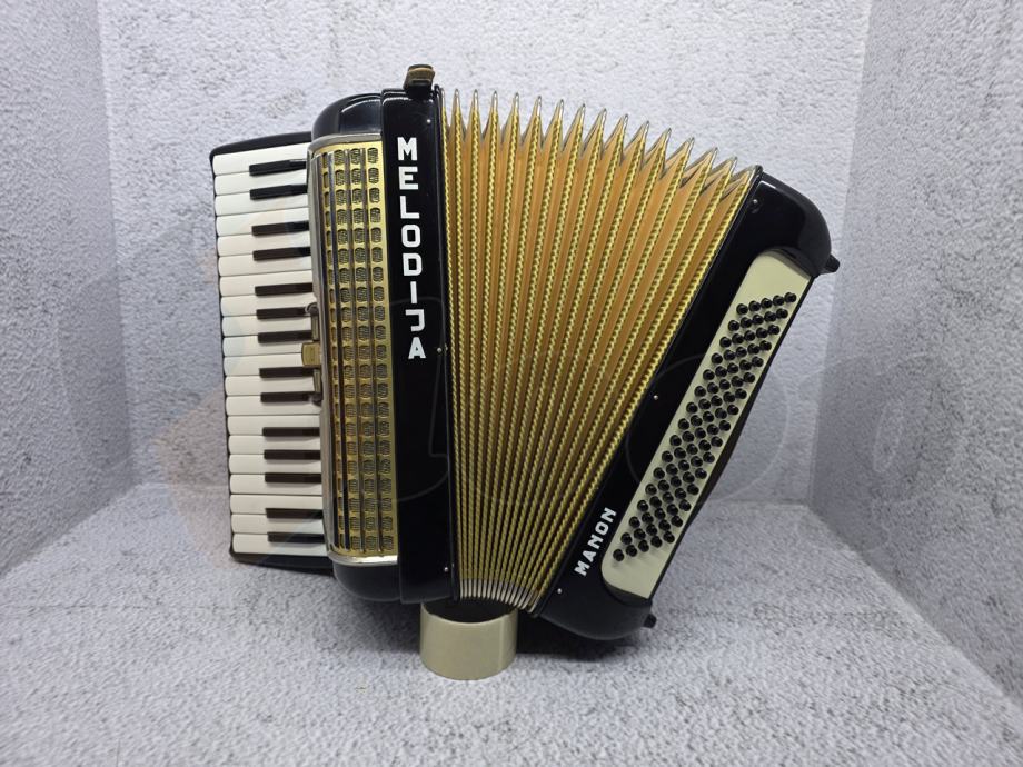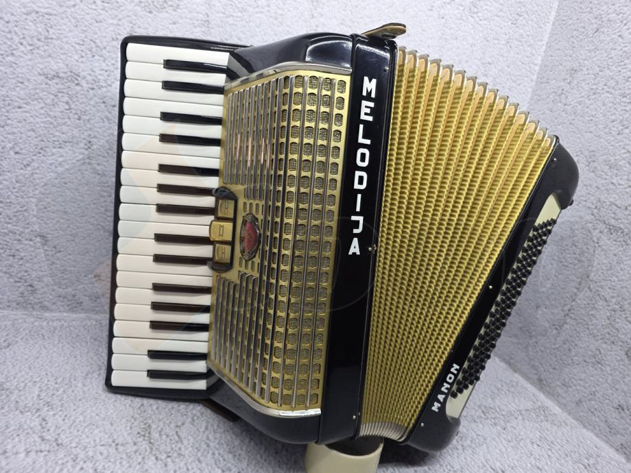odlično očuvana dvoglasna harmonika Melodija Manon 80, 3 registra, 80 basova. Napravljen kontrolni servis, tehnički i tonski potpuno ispravna. Melodija Manon 80 je savršeni instrumenat za Vašeg početnika u osnovnoj glazbenoj školi. Lagana, 34 tipke.