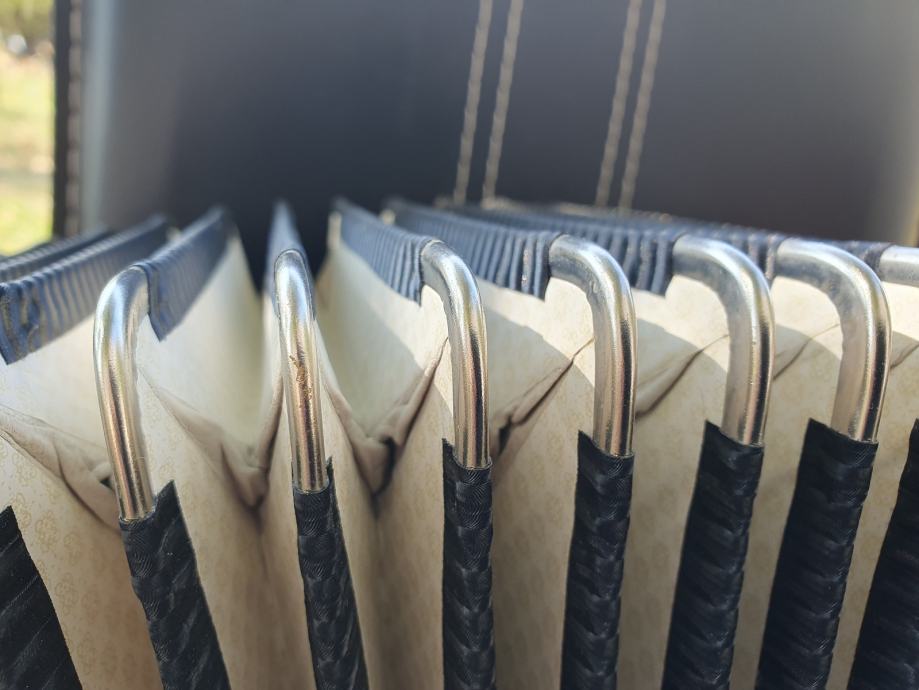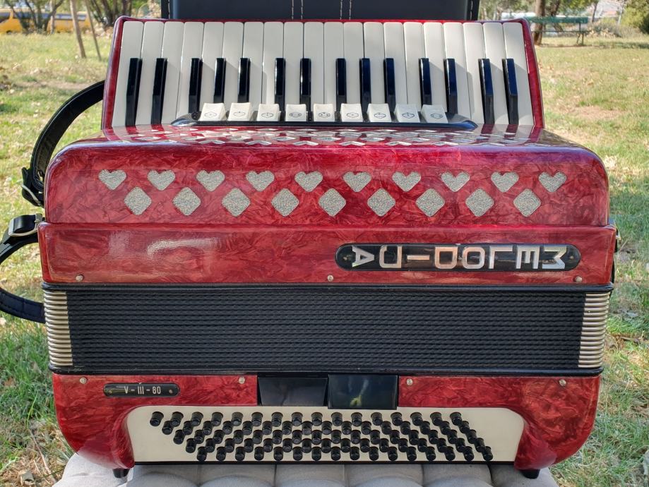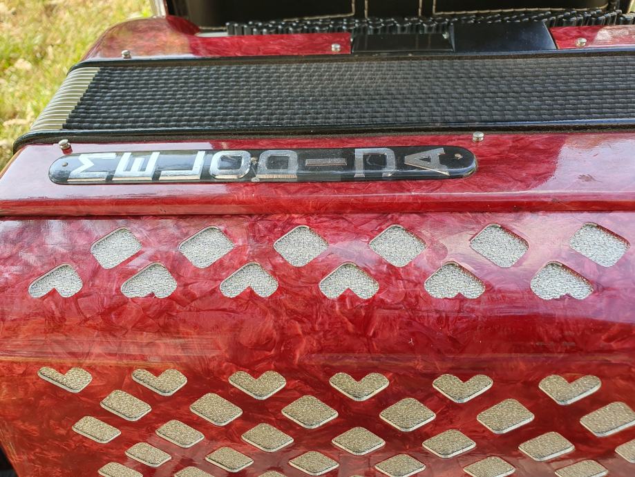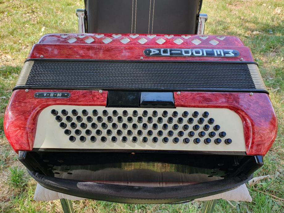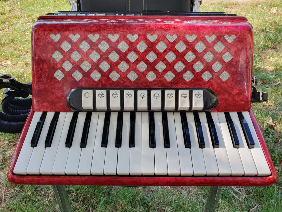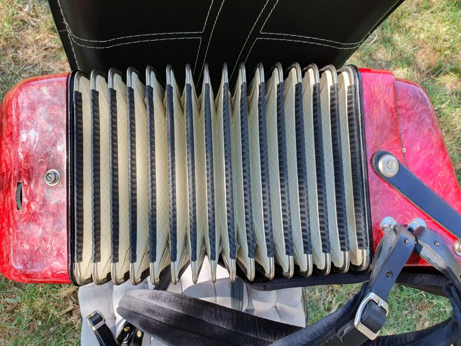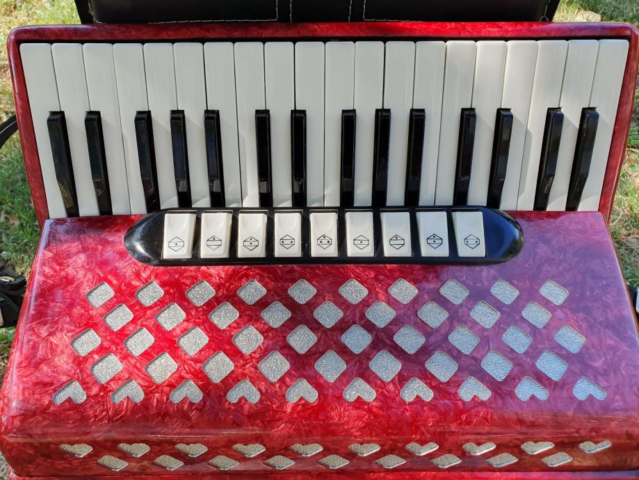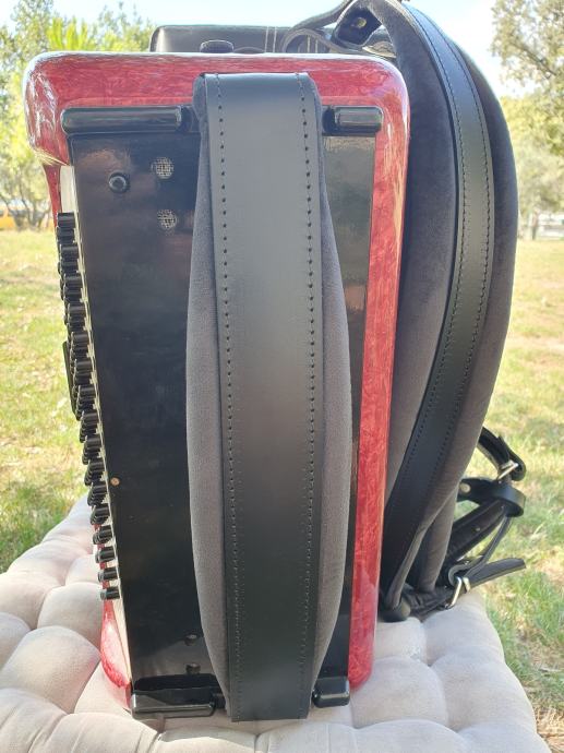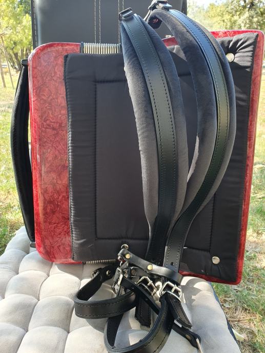 Harmonika je kao nova iz ducana,nekoristena,prekrasno zvuci.Unutar instrumenta vrhunski talijanski tonovi.Na harmoniku sam stavio nove italijanske remene(basni+ledjni)+nov jastuk za mijeh od najfinijeg italijanskog satena,zbog cuvanja samog mijeha i vece udobnosti pri sviranju.Klavijatura je mekana i brza,plitka tipka,na osovini.Bas je rezak i dubok.Svi registri imaju punocu zvuka i izrazajnost.Uz harmoniku ide njen pripadajuci cetvrtasti italijanski kofer.Obradujte sebe ili nekog svog najmilijeg kupovinom ove prekrasne harmonike i unesite radost i srecu u svoj dom.Nalazi se u Splitu.Sve informacije na tel.097/6476049 (viber,whatsup),Mladen!