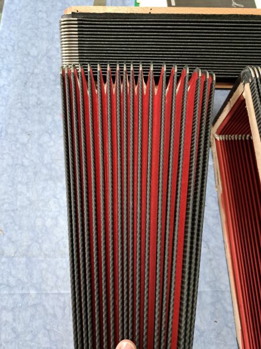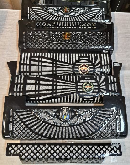 Mijehovi za harmonike,crna, crvena i bijela boja,mijehovi su novi,cijena za 60,72,80 b 150 €, za 96 b 200 €,za 120/140 b 250 €...50 € ugradnja!!Remenja svih veličina od 50do 80 €. Plastificirane maske,pletenice,grbovi za sve vrste harmonika!