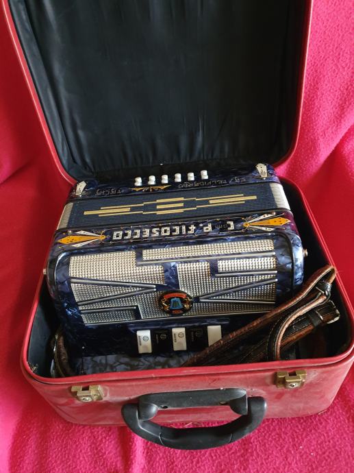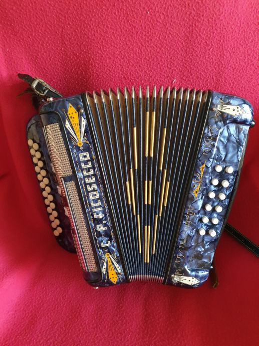prodaje se diatonska harmonika Triestina/organeta Pasqvali Picosecco original Castelfidardo Italy, prekrasna unikatna harmonika ,tonovi kovani voci fate amano, sve vidljivo iz fotografija stanje originalno, bez bilo kakvih ulaganja 4 reda fasena u primu+ master ,kofer.Veoma rijedak model rađen samo po naruđbi u Castelfidardu.Cijena je fixna samo pozivi na poruke ne odgovaram.