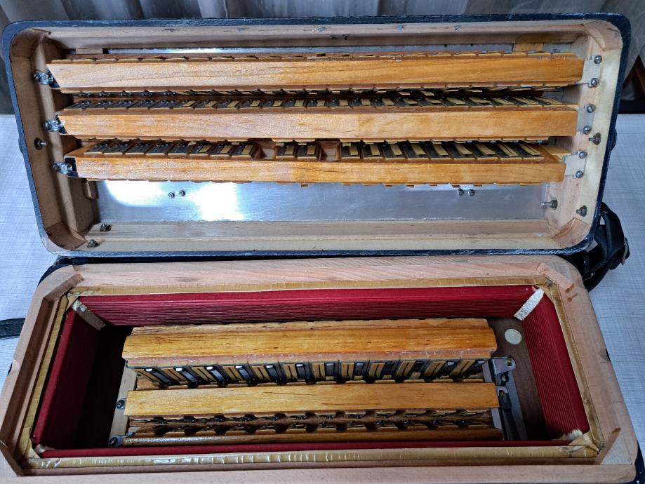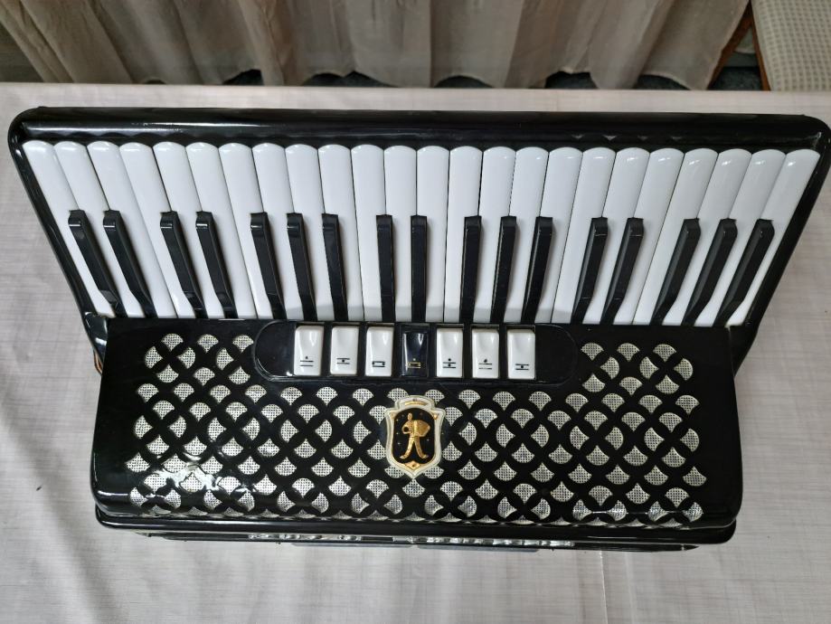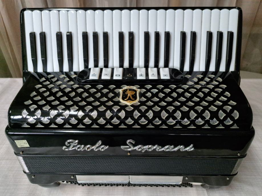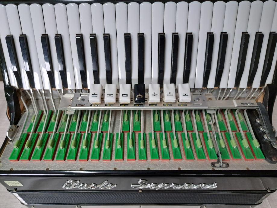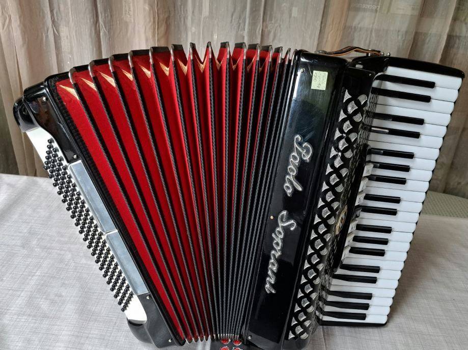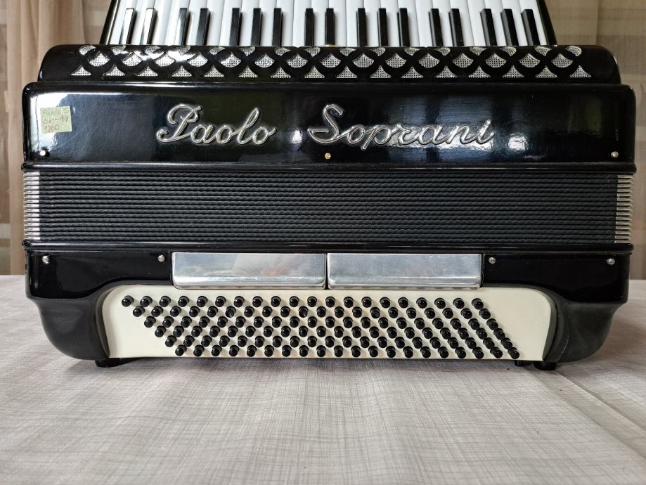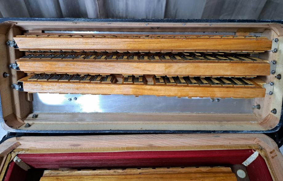 Paolo Soprani 120 basova,7 na klavijaturi dva na basu,na primi troglasna u basu 4 glasna,sve original,estecki dobra,crveni mijeh dihtacija odlična,tonski uredna,ima svoj kofer.