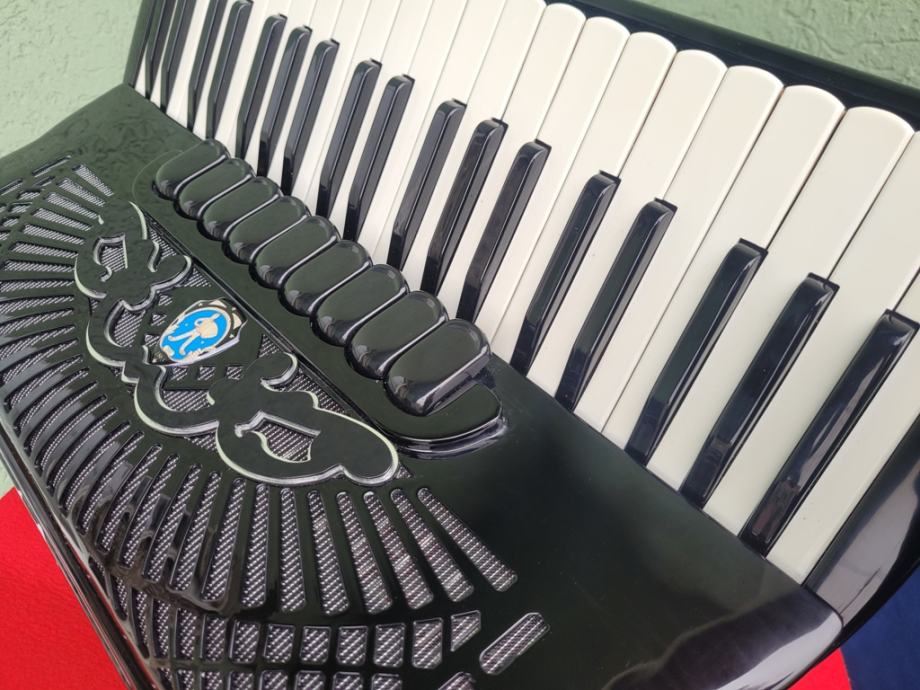 PAOLO SOPRANI 120 bas 4-glasna u izuzetnom stanju. Meka, plitka klavijatura, odlicna dihtacija, vrlo jaka tonski nastimana na 442 Hz. Sve potpuno ispravno, uredno i nastimano. Tezina 10 kg.