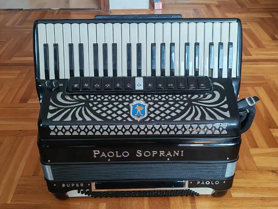 Prodajem potpuno ispravnu i očuvanu harmoniku Paolo Soprani Super Paolo, 120 basova, 13+1+7 registara, 2+2 dupla kabina. Harmonika je ozvučena, radi preko kabla a može i bežično bez kabla. Cijena je 3950 eura, može se isprobati u Zagrebu Dubrava žuti breg. Info na 091 303 9093.