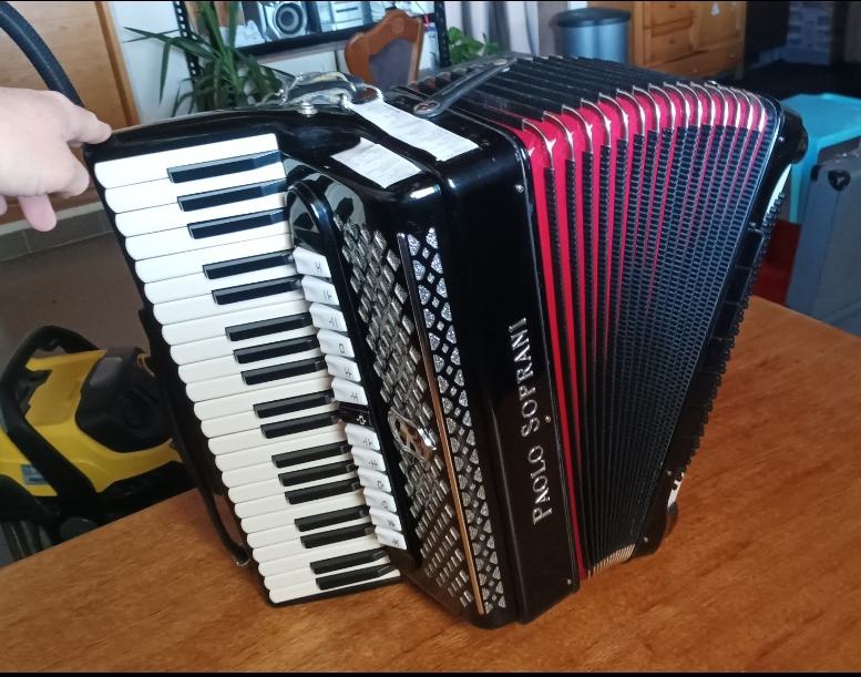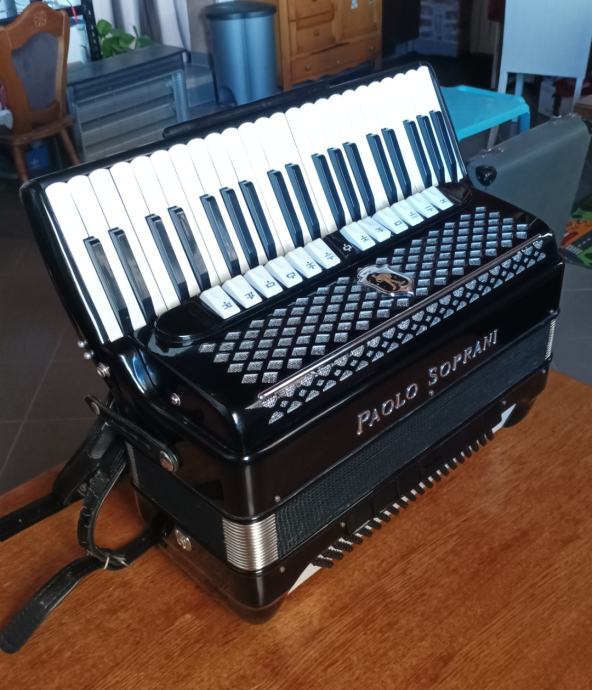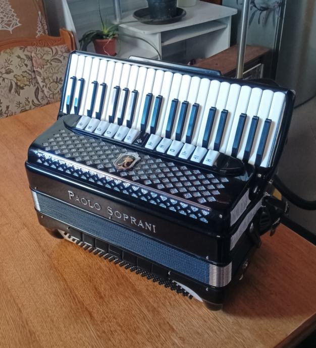 Maksimalno ocuvana kao nova harmonika, korištena samo doma, bez ijedne ogrebotine, stara preko 30 godina... Crna s crvenim mjehom, 13 + 7, master, peteroglasna u basu, cetvreoglasna u klavijaturi. Moguća zamjena za guerinni, scandali, siwa & figli, ... Cijena po dogovoru, moguće plačanje na rate po dogovoru. Zamjena za razno?! 0915228560 ili 0993395999