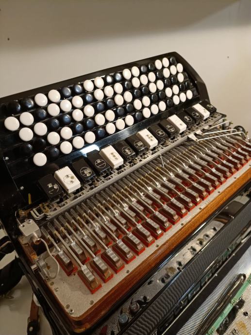 Težina harmonike 11,8kg,jako dobro očuvana,tonski točna,odaziv tona brz,plitka tipka,masan ton obostrano,dihtacija odlična,utegnuta,obostrano ozvučena!Fantastičan instrument!Samo originali!!!!Pogledaj moje oglase!!!