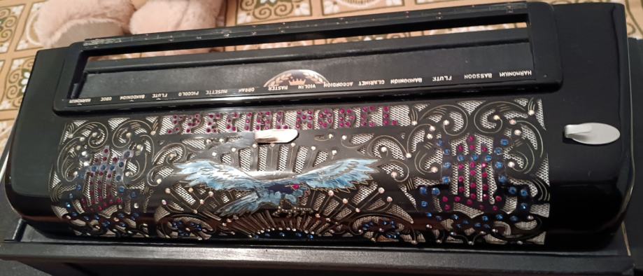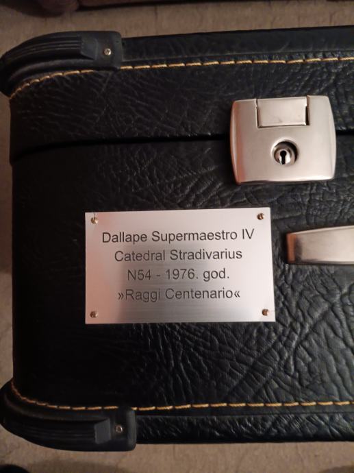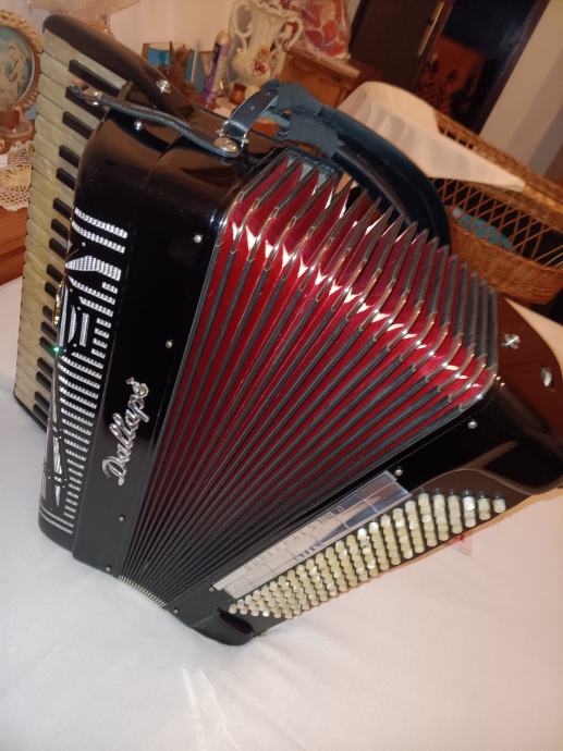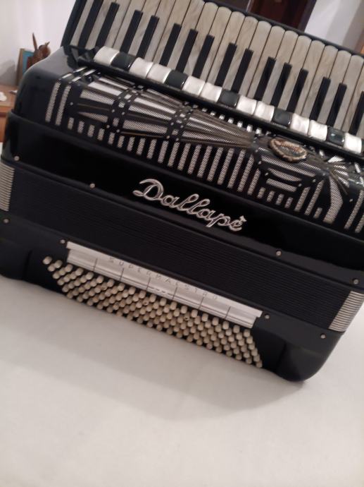 Prodajem harmoniku Dallape, Supermaestro IV, Model catedral-raggi centenario, kabinska 2+2, Artigiana glasovi, kao nova! Uz harmoniku ide originalni kofer iz 1976.god.i novi kofer na kotaćima, te rezervna maska (specil model) sa kutijom. Cijena 12000€. Mob. 0912055755.